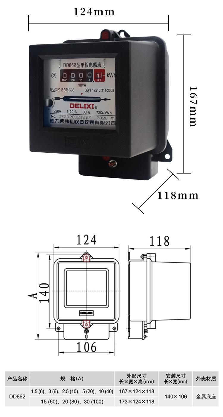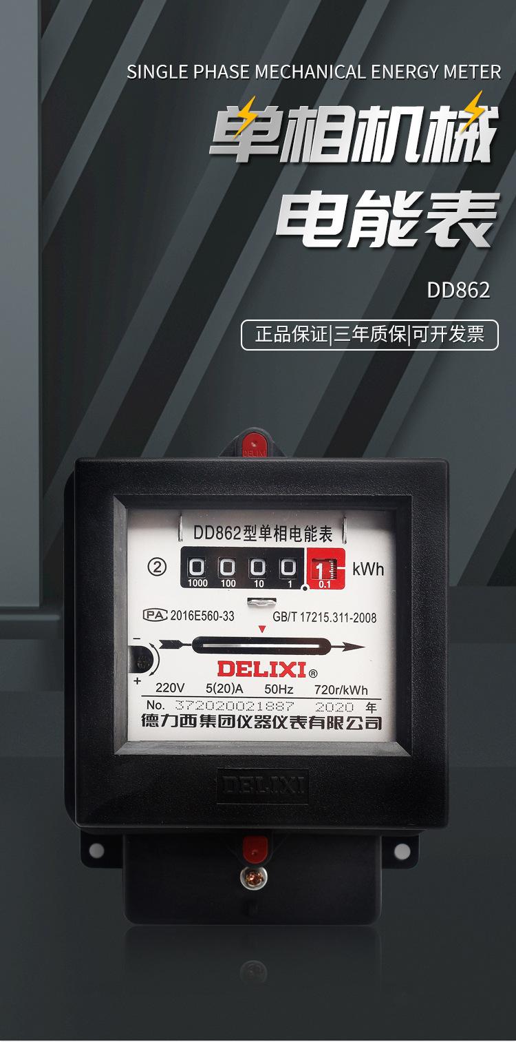 Medidor de Electricidad Doméstico Mecánico Monofásico Medidor Delixi Dd862 Tipo Mecánico en Stock Suministro Pantalla Digital Medición Precisa