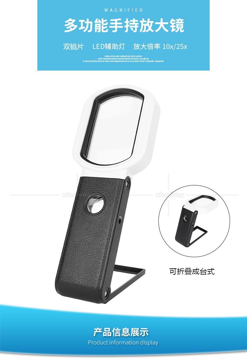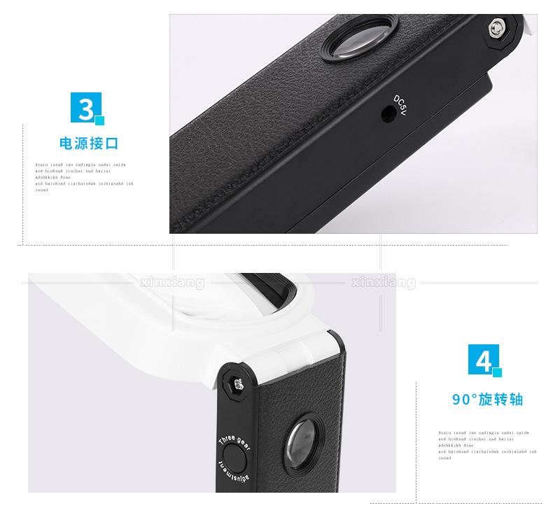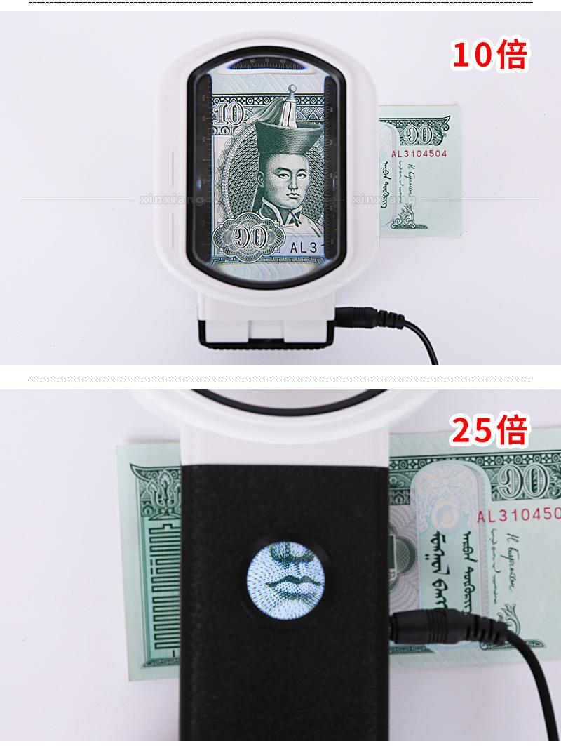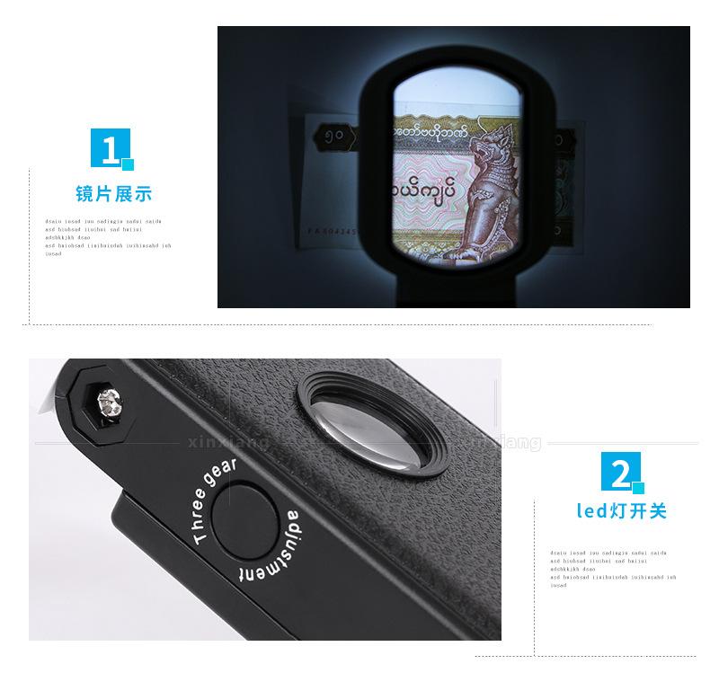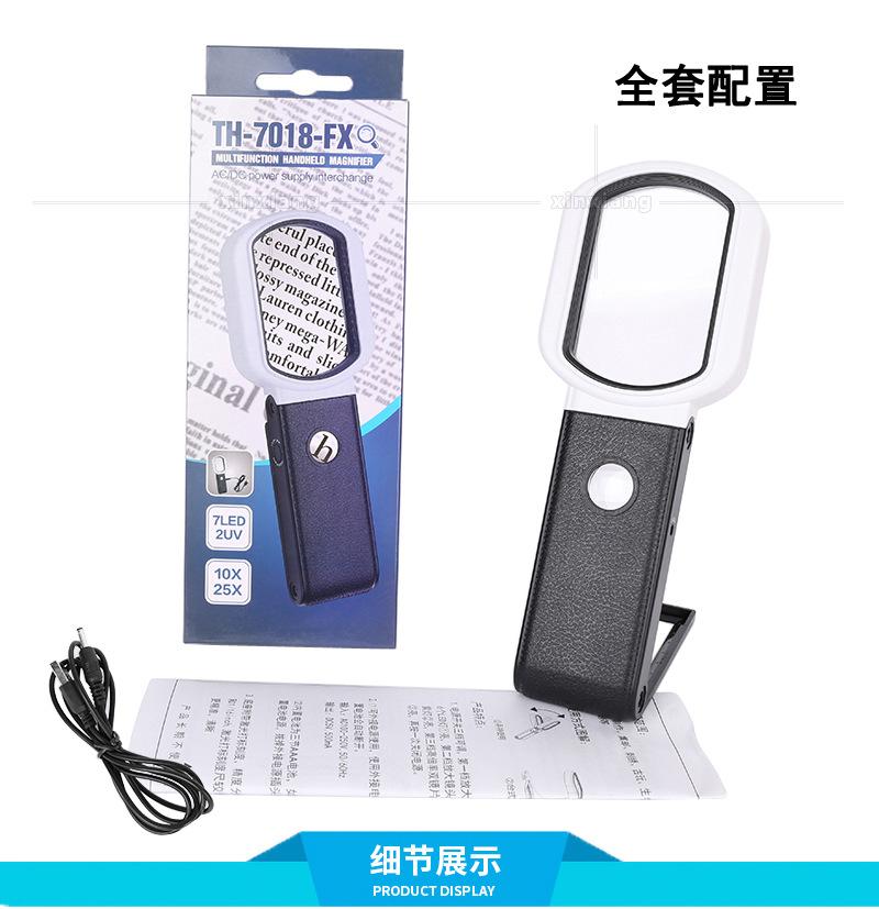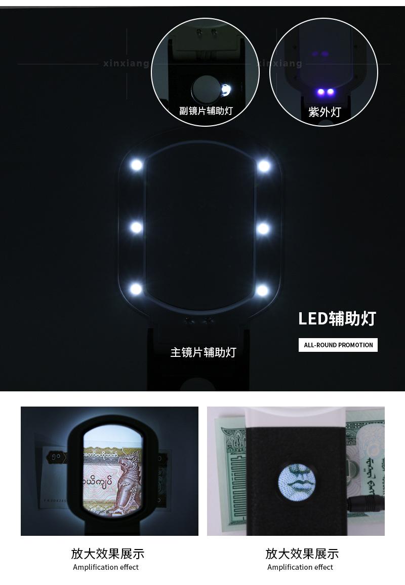 Lente óptica cuadrada de 85 x 55 mm, 9 LED, detector de dinero, luz de mano, lectura, identificación, lupa antigua