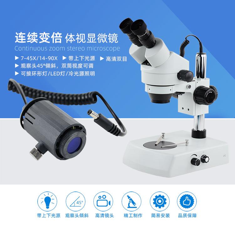 Microscopio estereoscópico binocular con zoom continuo, herramienta industrial de la marca Iceyi, con o sin fuente de luz, 7-45X/14-90X, con ocular de gran campo de visión y aumento de 45x.
