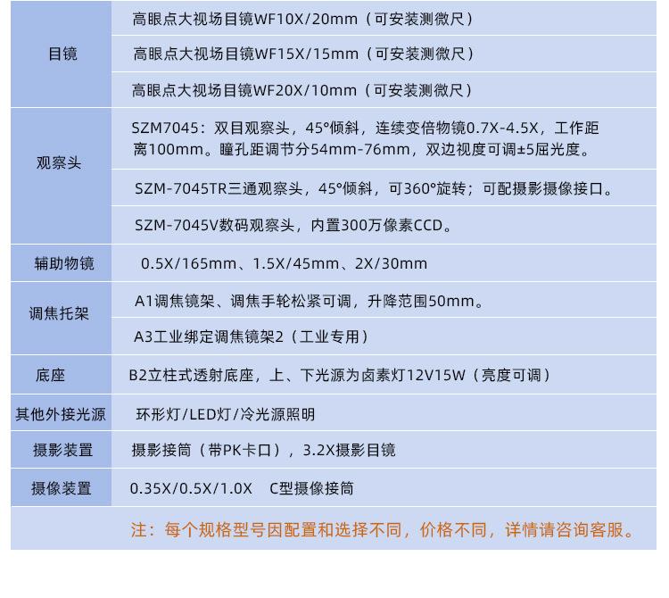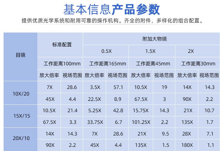 With upper and lower light source 7-45X, Without upper and lower light source 7-45X, With upper and lower ligh...