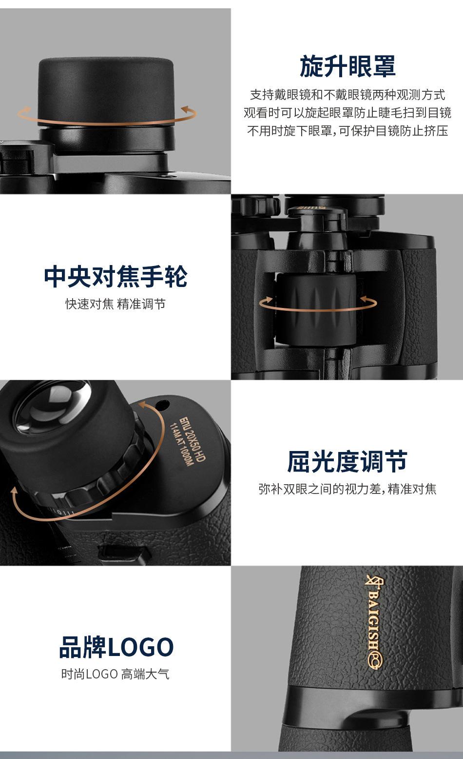 Binoculares Bogos para exteriores 20x 50 ocular grande 3ra Generación Visión Nocturna con poca luz alta potencia HD espejo para acampada al aire libre