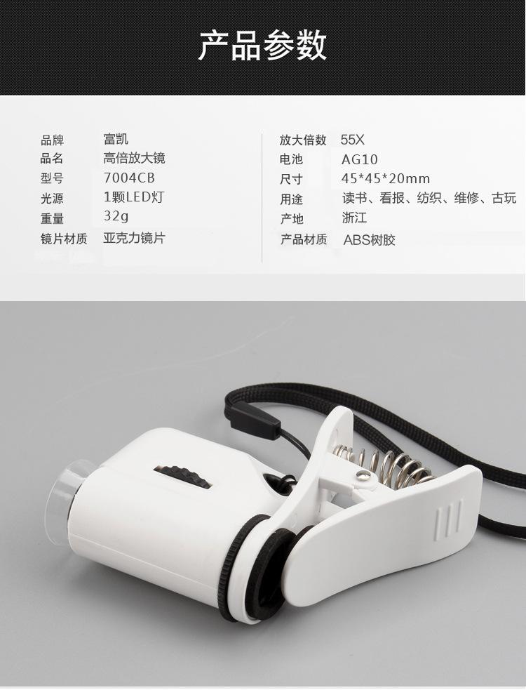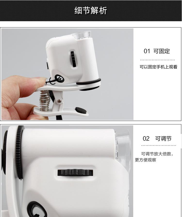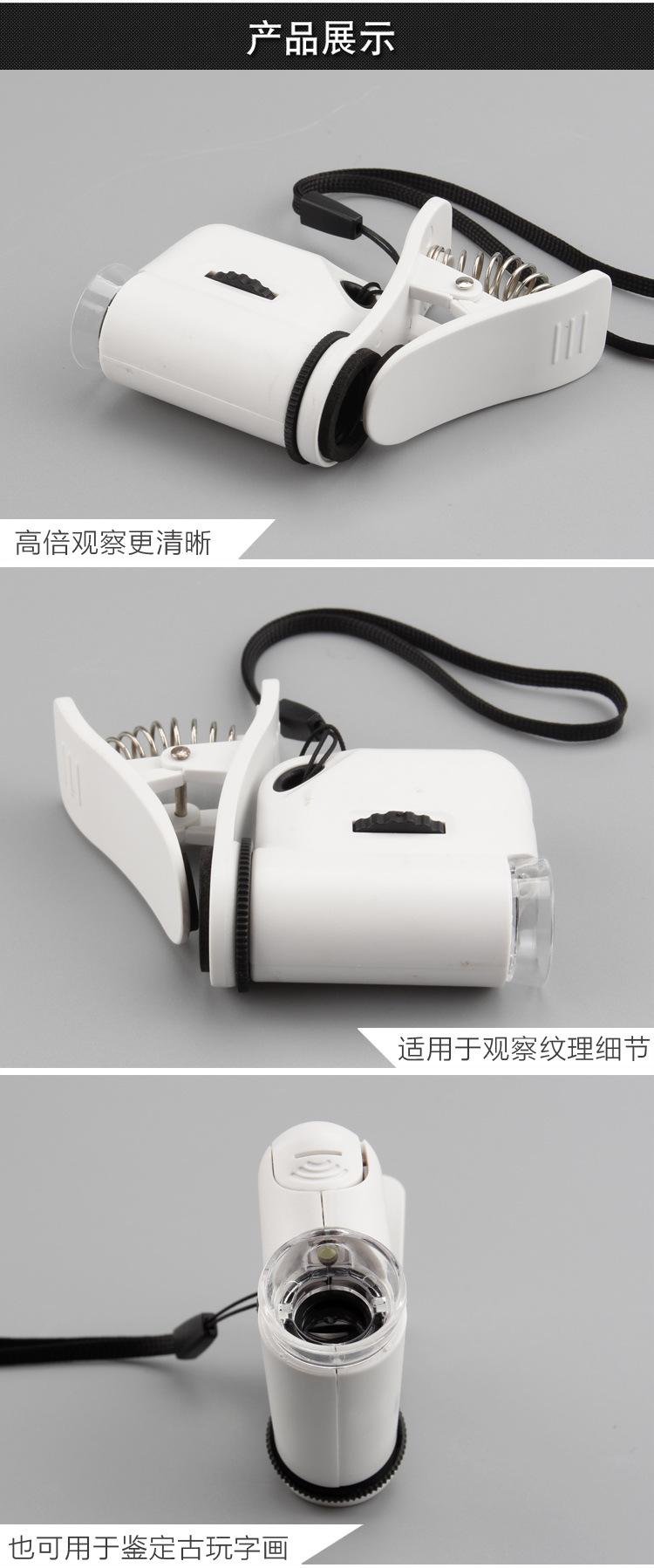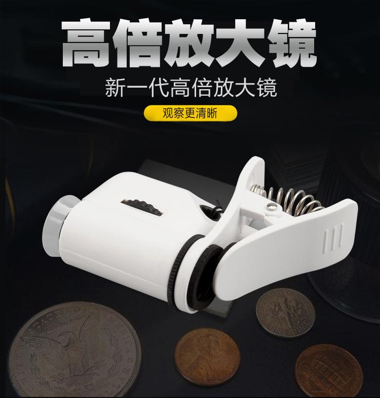 Venta caliente transfronteriza 55X Lente de teléfono móvil HD Clip Microscopio LED Alta potencia Portátil Mini microscopio