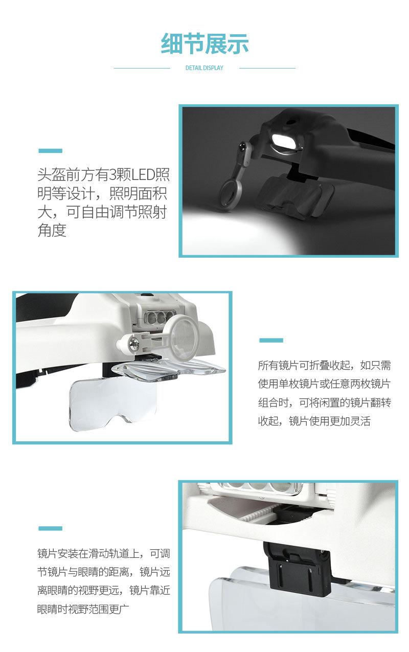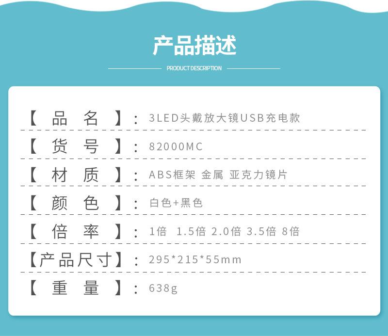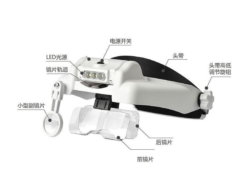 [Nombre]: Lupa de cabeza con 3 LED, carga USB