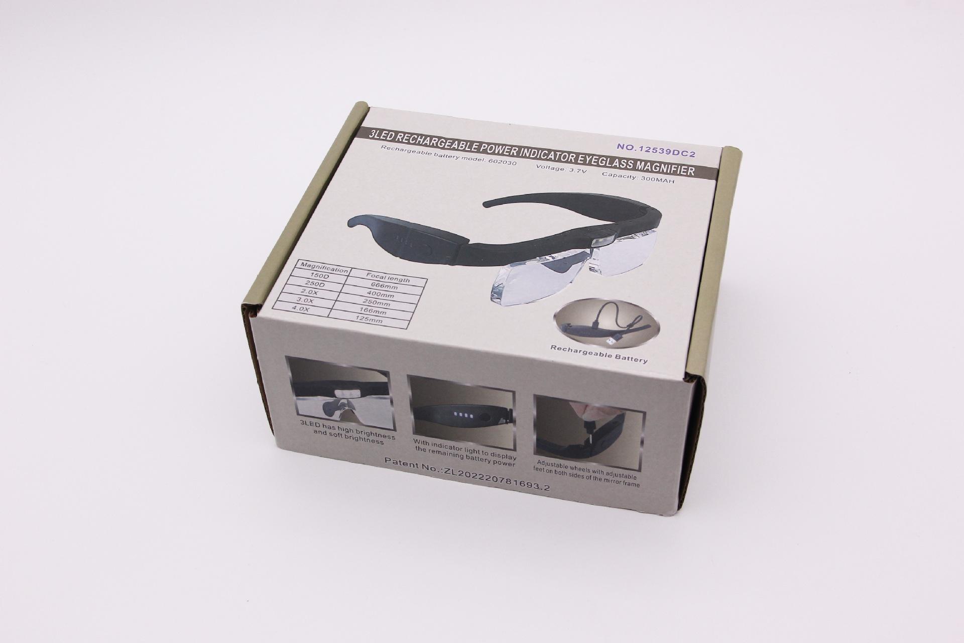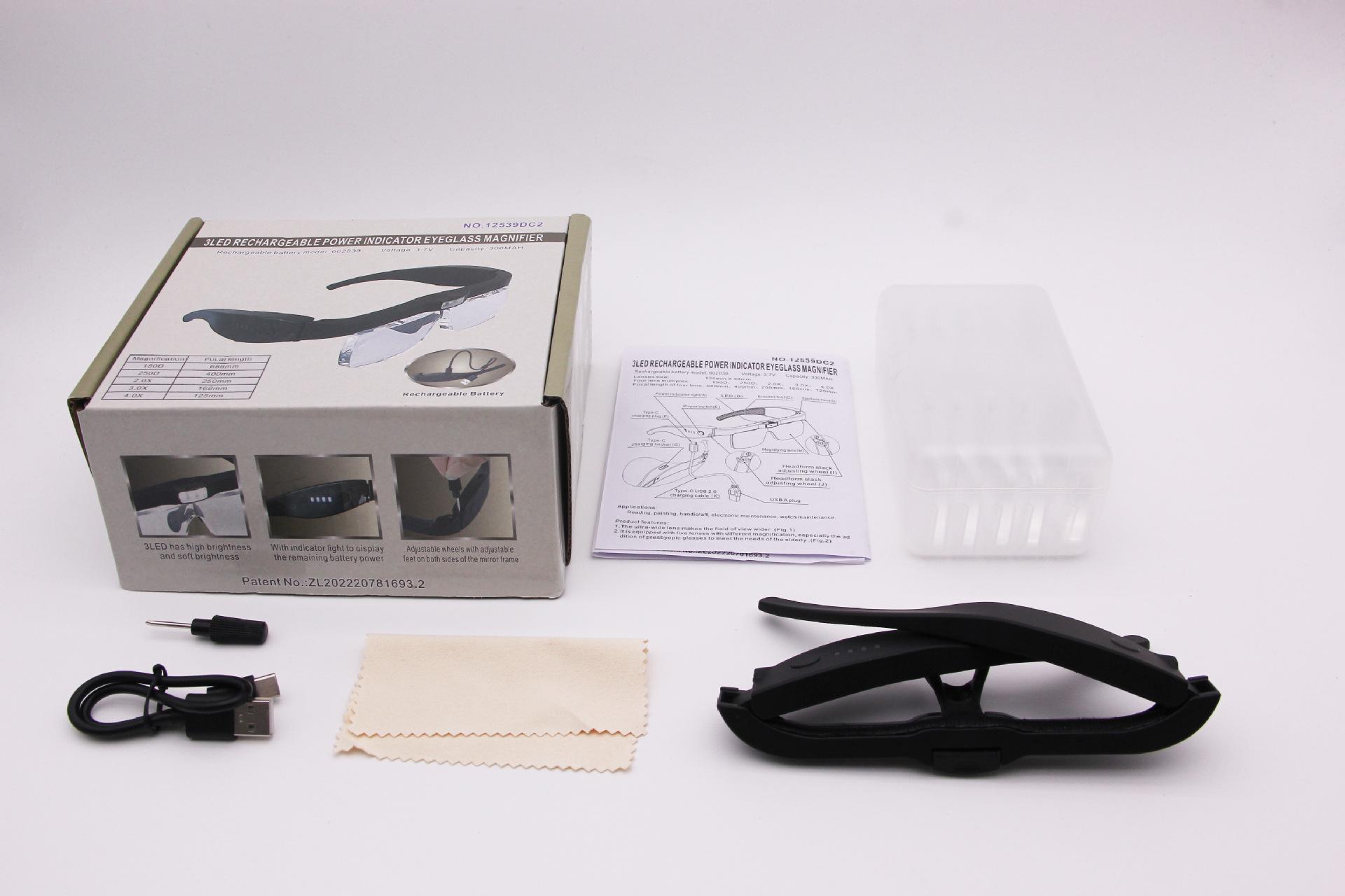 Embalaje: montura de gafas, caja de gafas (incluye 5 lentes), cable USB, paño para limpiar gafas, manual en chino e inglés, caja a color en inglés.