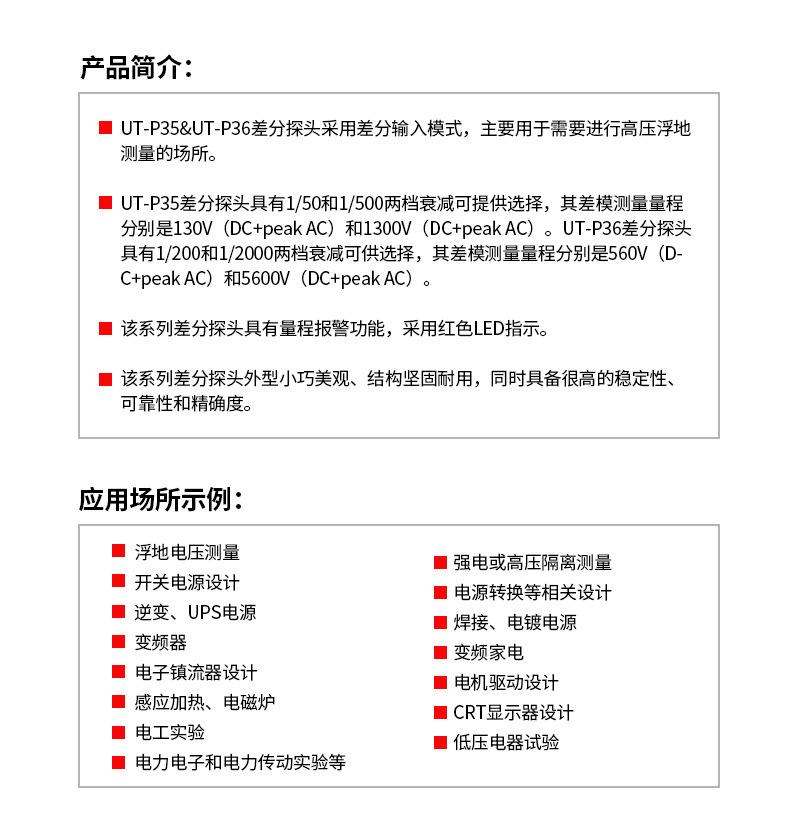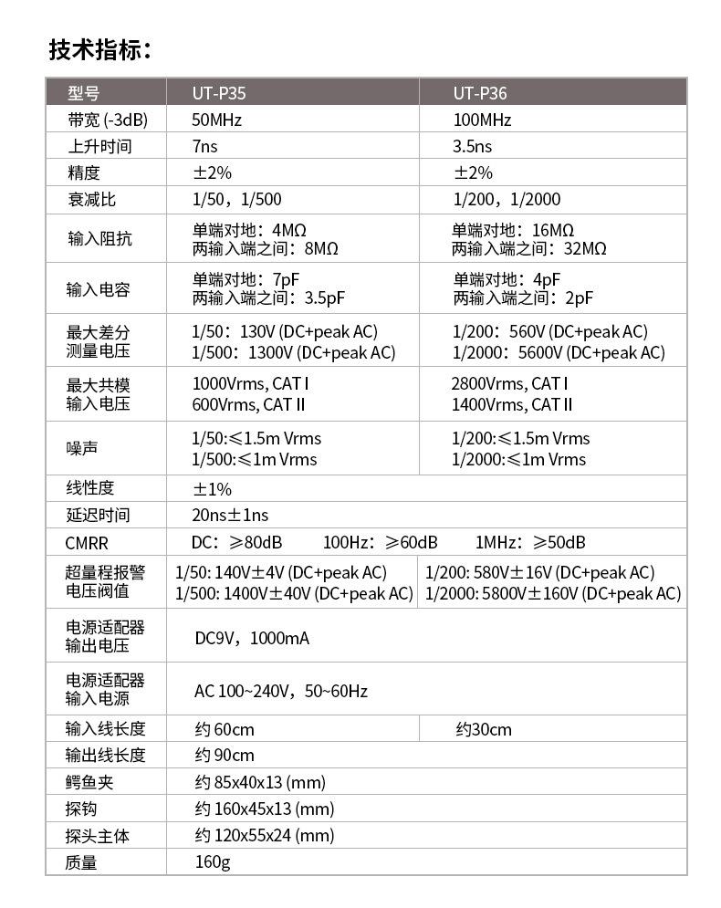 UT-P35 [50MHz/1.3KV]], UT-P36 [100MHZ/5.6KV]]