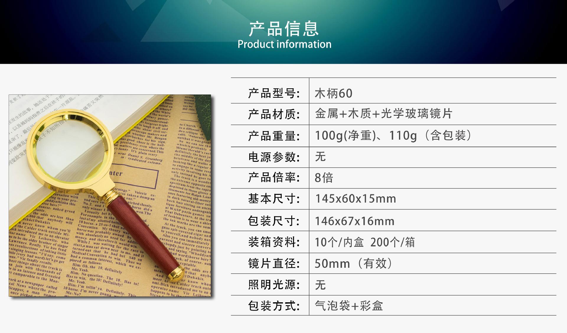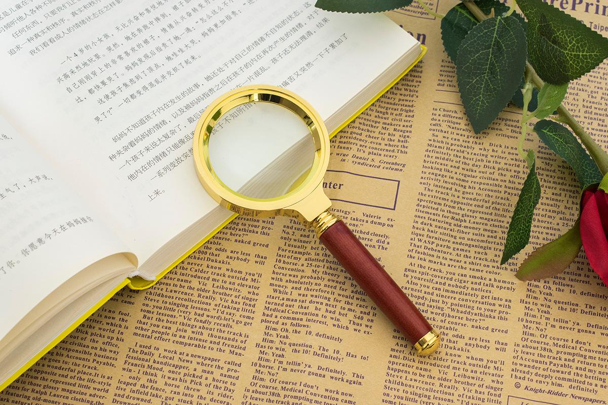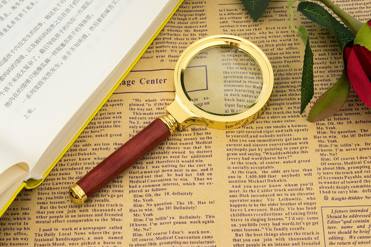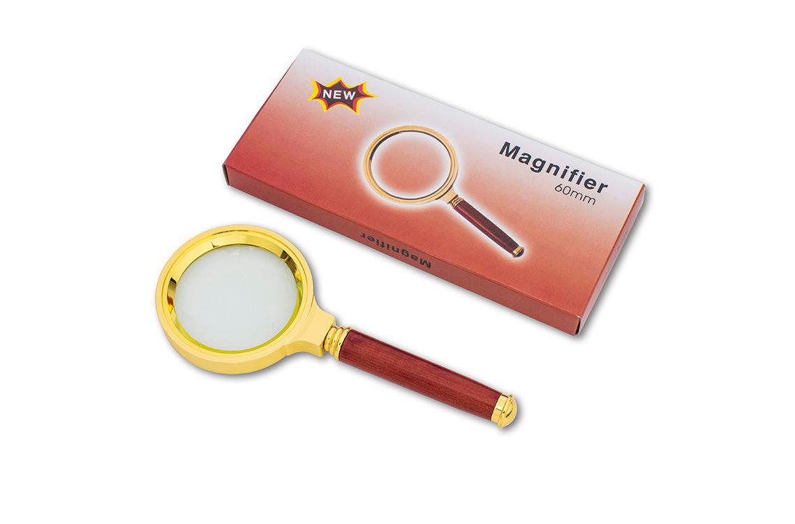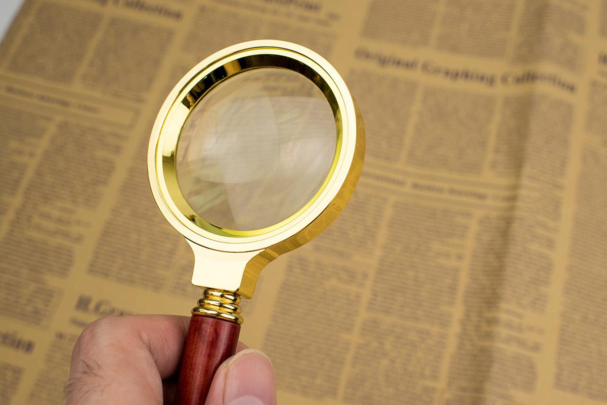 Lupa de mano de 60 mm totalmente metálica con mango de madera de 8 aumentos, directa de fábrica, para leer periódicos para ancianos y niños en HD