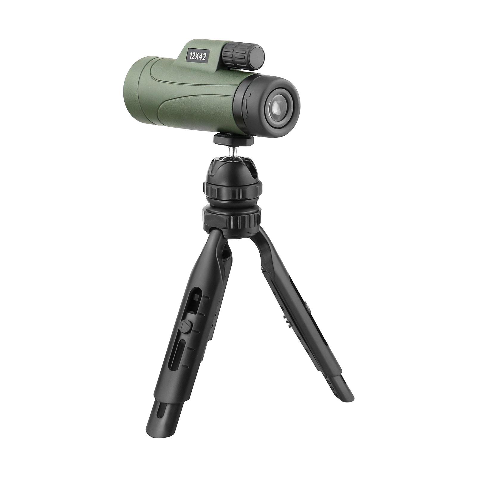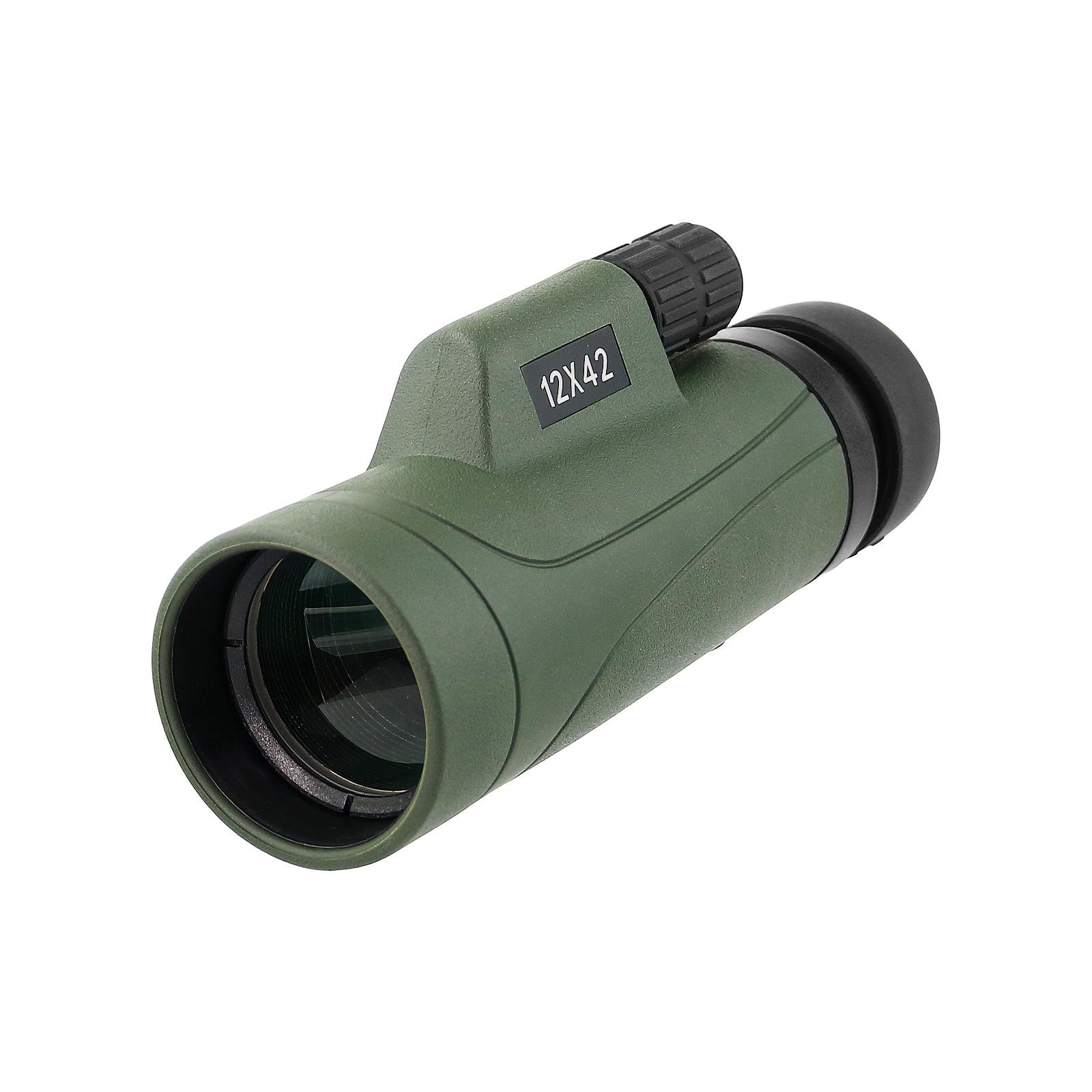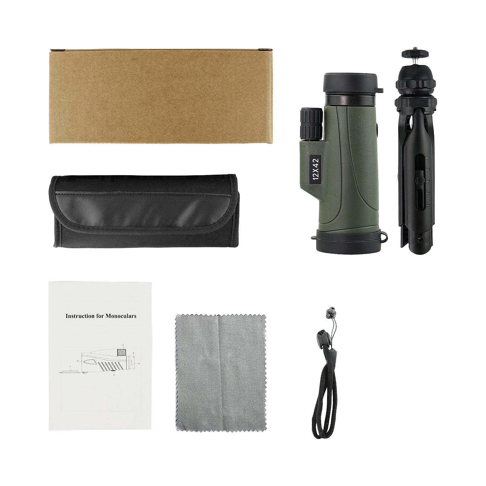 Nuevo telescopio verde 12X42 HD de alta potencia BAK4, lente óptica completa con soporte, telescopio para exteriores, venta al por mayor