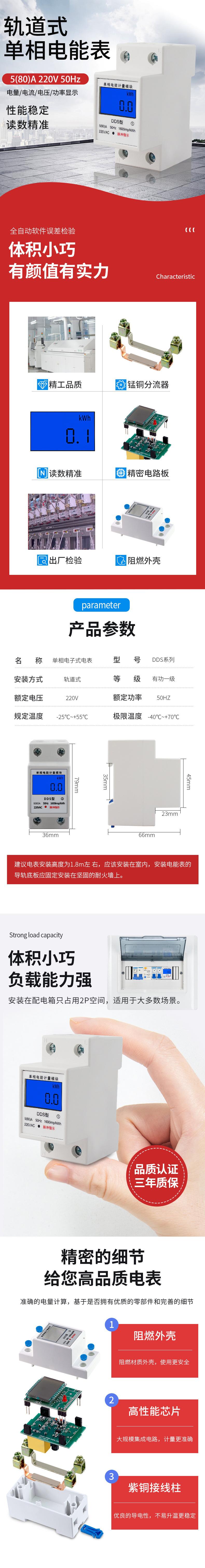 Alquiler de medidor eléctrico 2P, vivienda, monofásico, hogar, guía inteligente, instalación de carril, 220 V, pequeño, 5 A, multifuncional, 60 A, alta precisión
