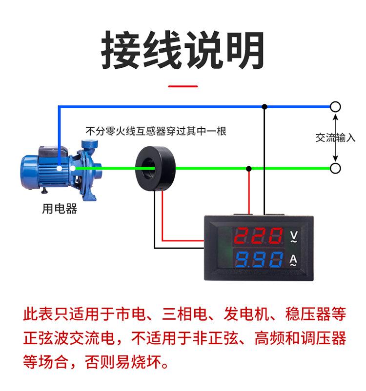 AC60V-500V external CT ~ 99.9A transformer, AC60V-500V voltmeter, AC100A ammeter (external transformer)