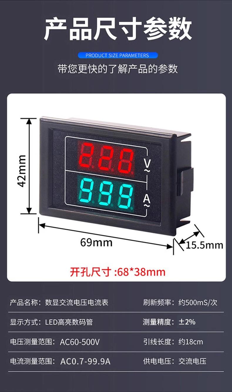 Amperímetro de voltaje CA con pantalla digital de doble LED, medidor digital de alta precisión D85-5035VA
