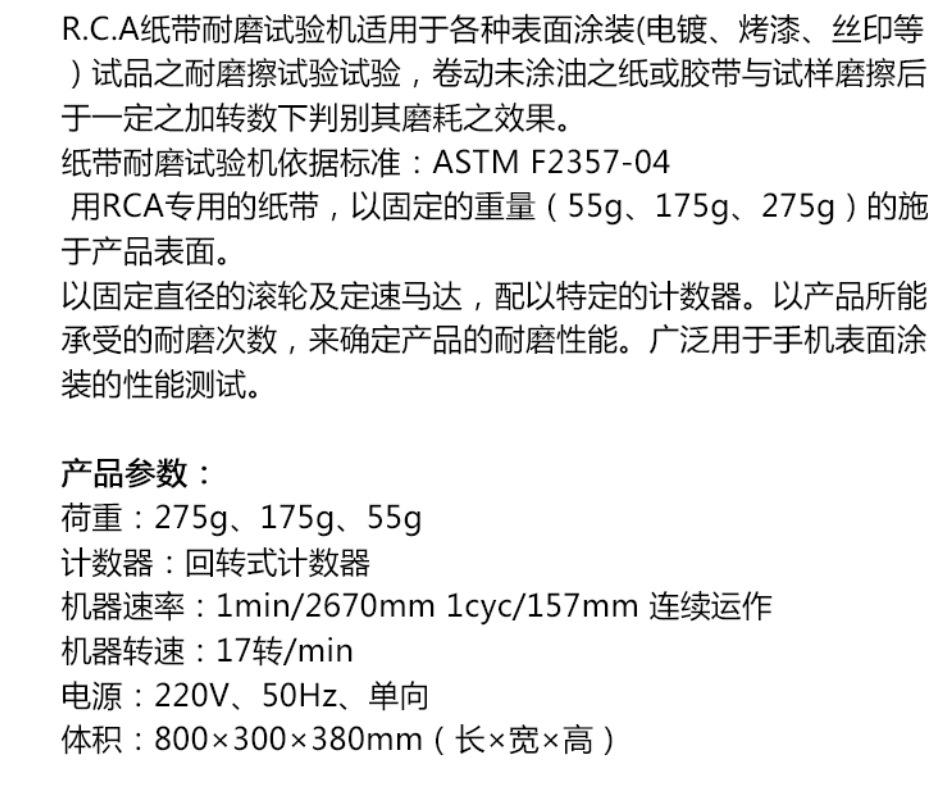 Máquina de prueba de resistencia al desgaste de cinta de papel RCA Una prueba de revolución de fricción de superficie estándar resistente al desgaste