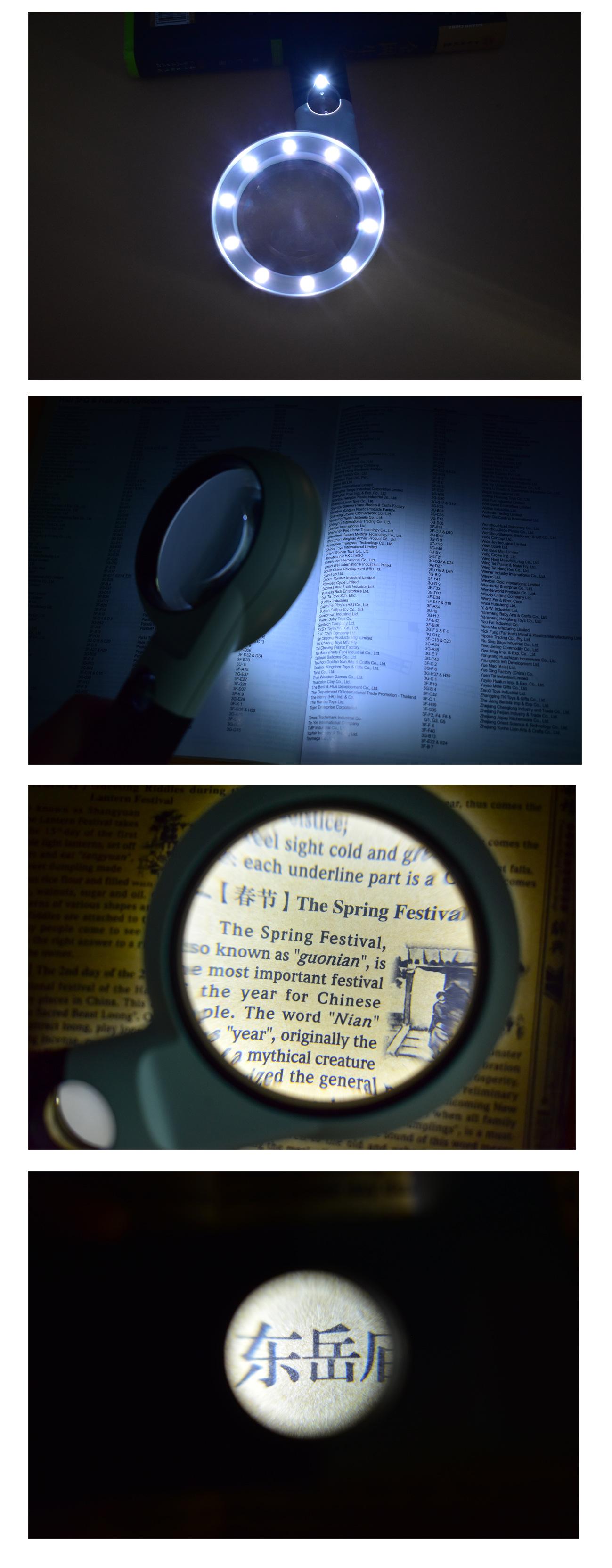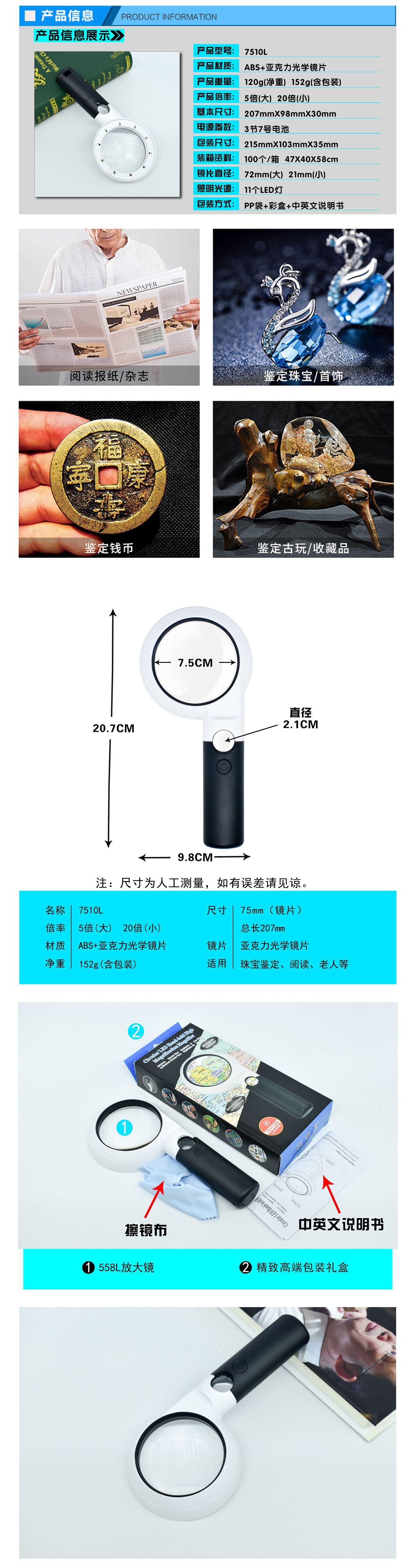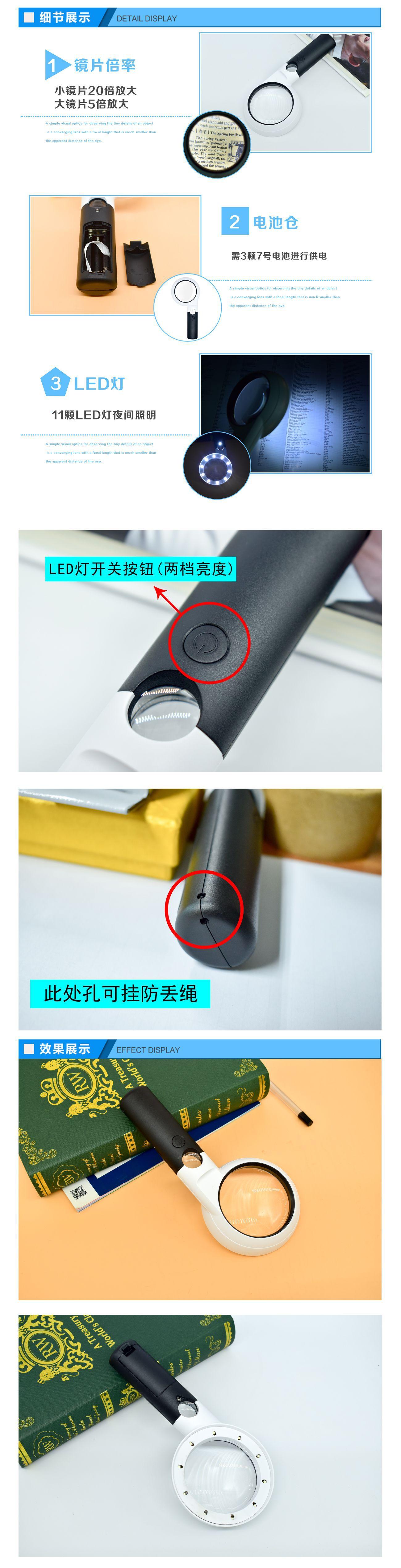 Lupa de mano de 11 luces LED de fábrica directa 5 veces 20 veces doble capa de alta potencia para identificación de antigüedades, lectura para personas mayores