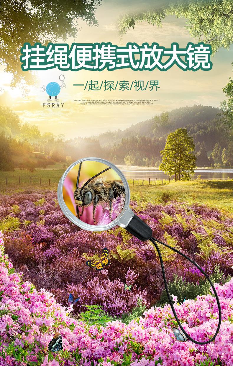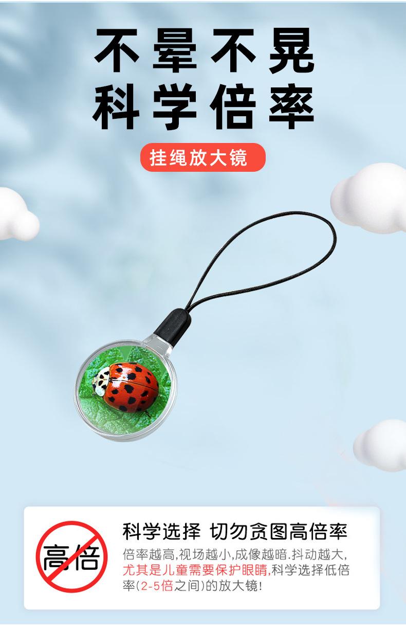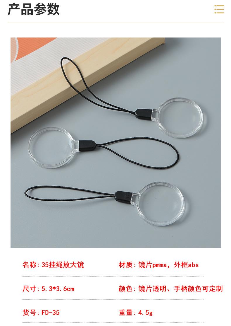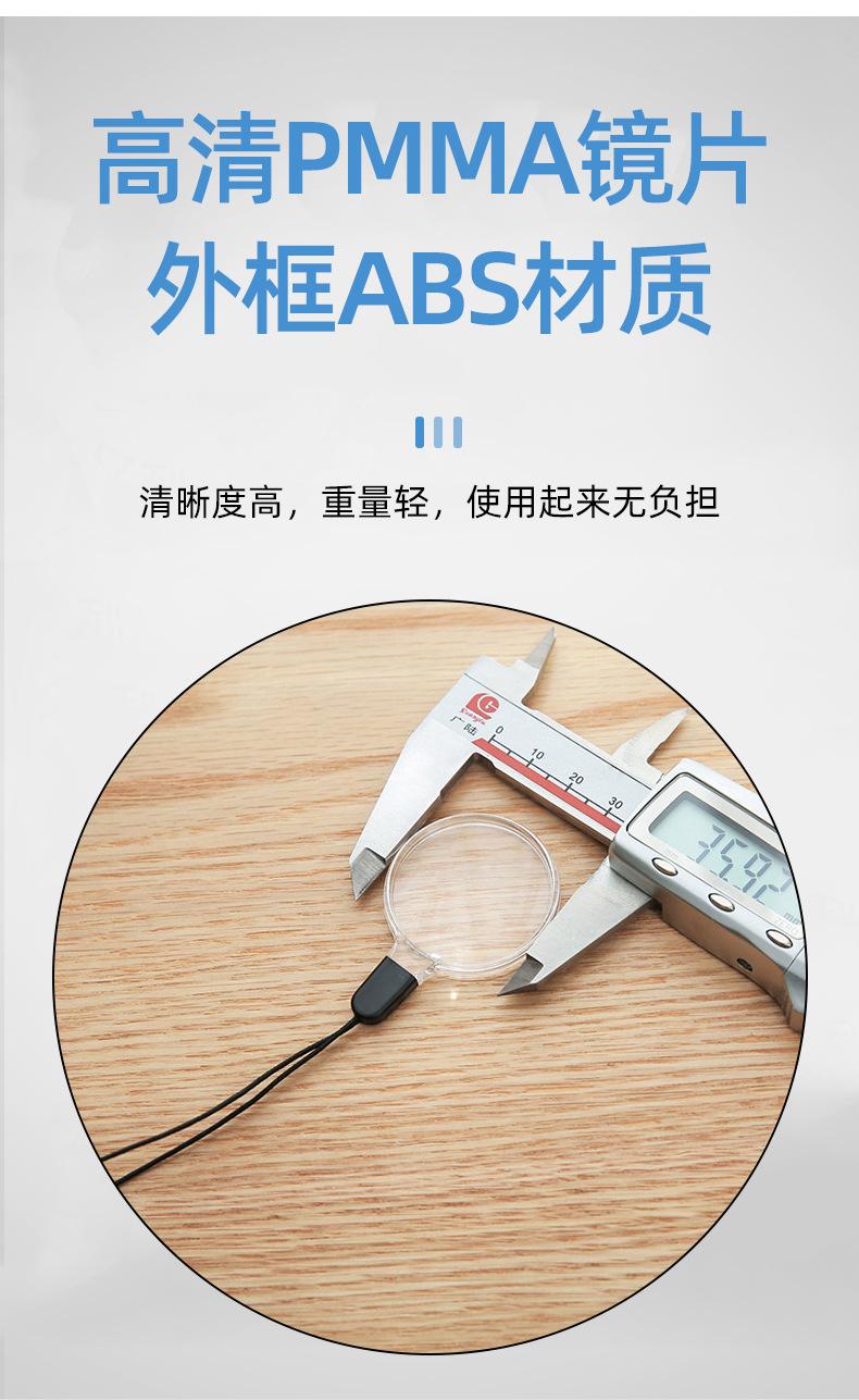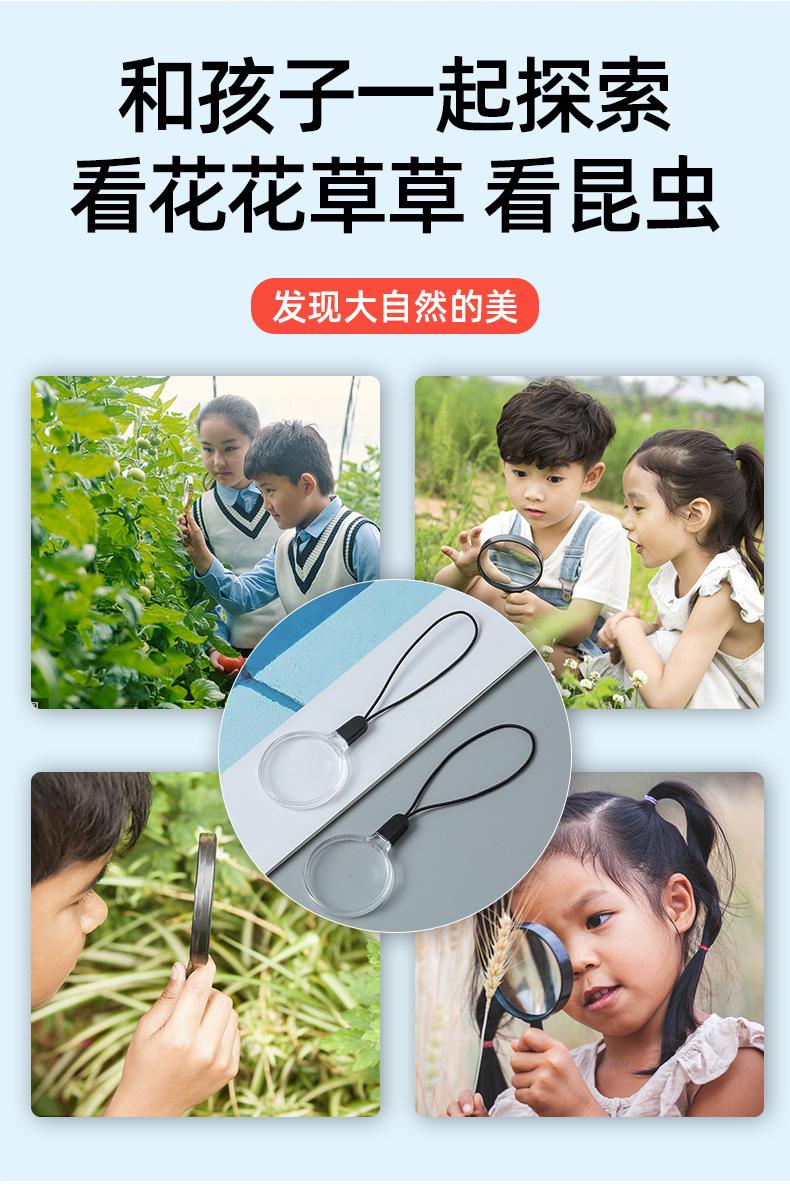 Lupa para niños con cordón y lente acrílica y mango de plástico, de fábrica.
