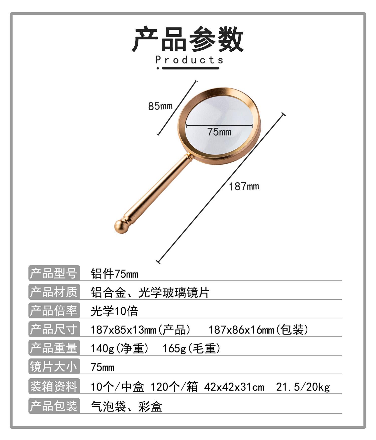 Lupa de Mano Especial de Alta Definición Óptica de Vidrio Blanco 10X Aumento Lupa Totalmente Metálica para Lectura y Periódicos para Adultos Mayores