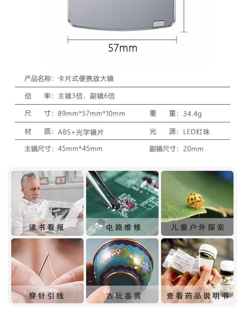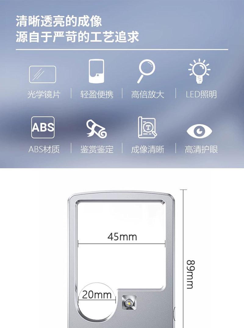 Lupa portátil multifuncional tipo tarjeta de 20 aumentos HD para lectura de personas mayores de alta potencia con luz LED