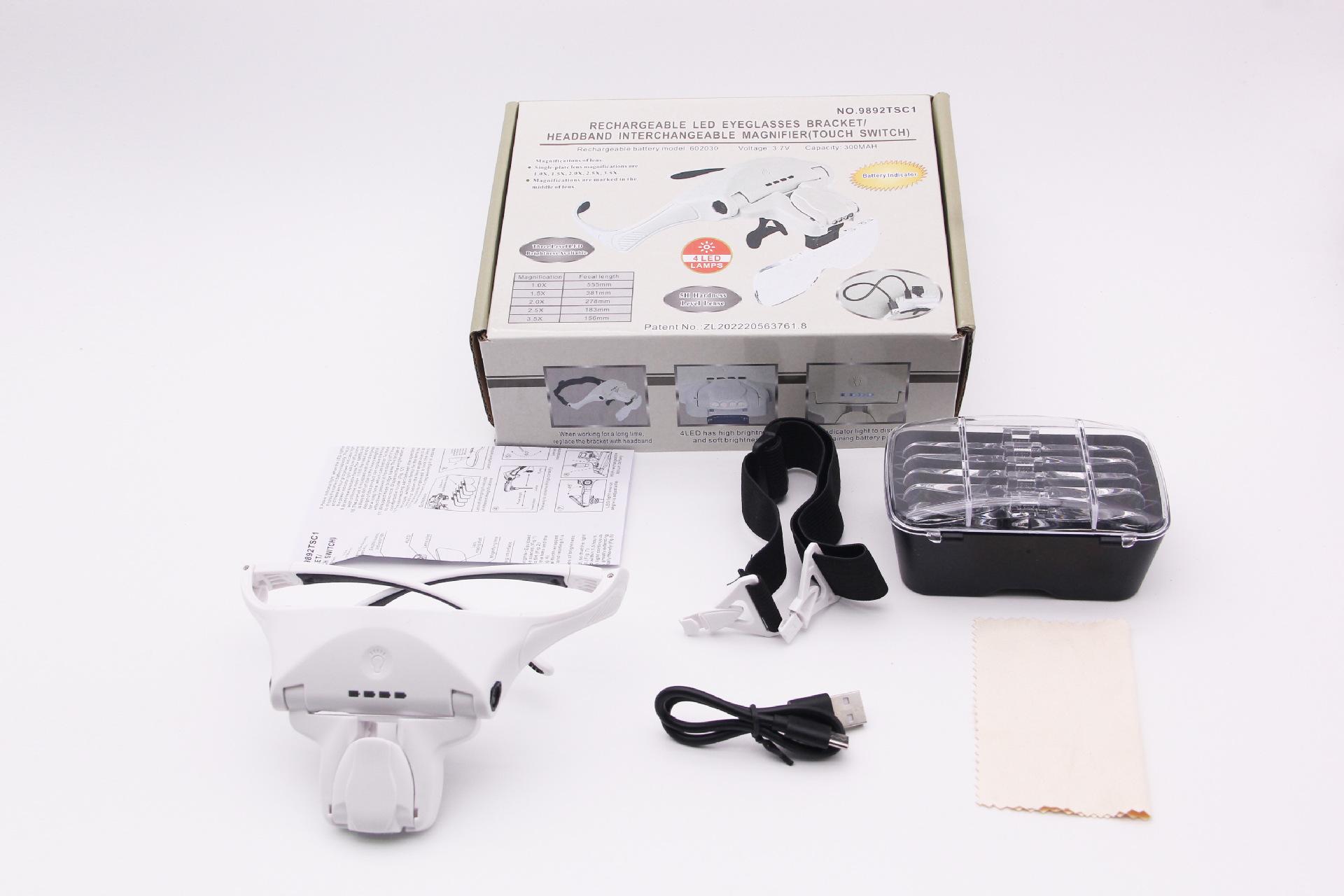 Embalaje: producto + 5 juegos de lentes + diadema + cable USB + paño de limpieza para lentes, manual en chino e inglés, caja de color neutra en inglés