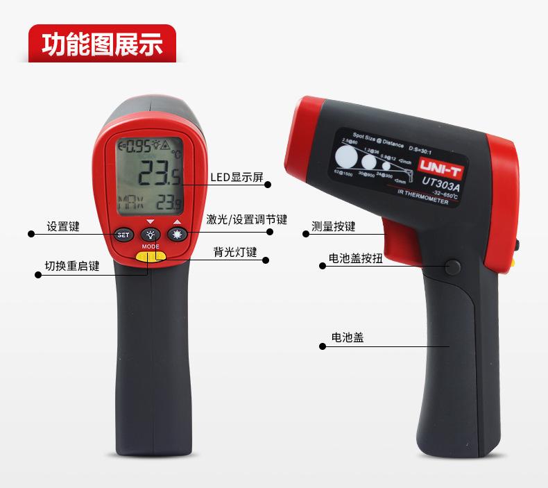 Termómetro infrarrojo de grado industrial de alta temperatura ULEED UT303A/UT303C/UT303D, pistola de medición de temperatura sin contacto