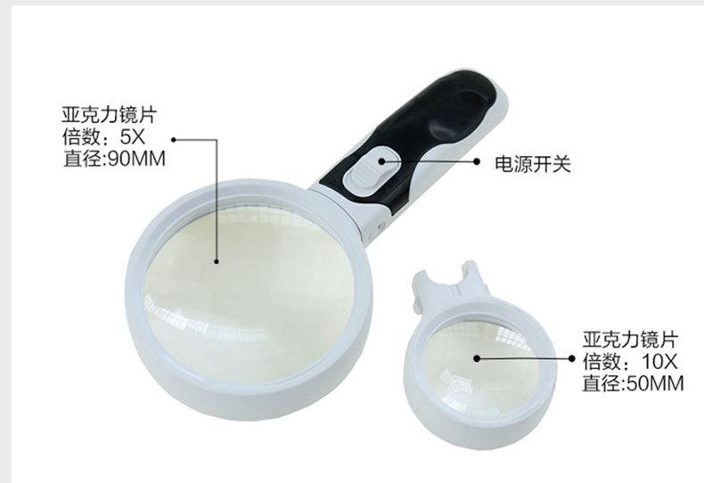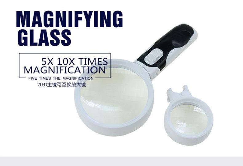Lupa de mano 5 veces 10 veces de doble lente reemplazable con luz LED lectura para personas mayores mantenimiento lupa de alta potencia
