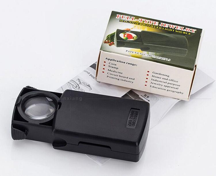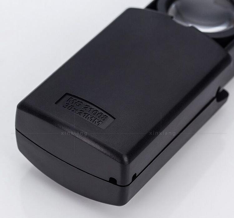 Lupa con lente de vidrio óptico de 30 x 21 mm y luz LED, cajón de 30 aumentos, joyería antigua con diamantes, identificación de jade.