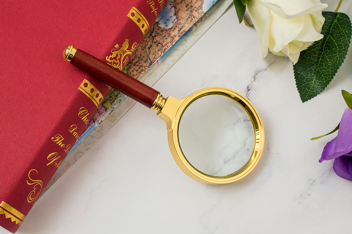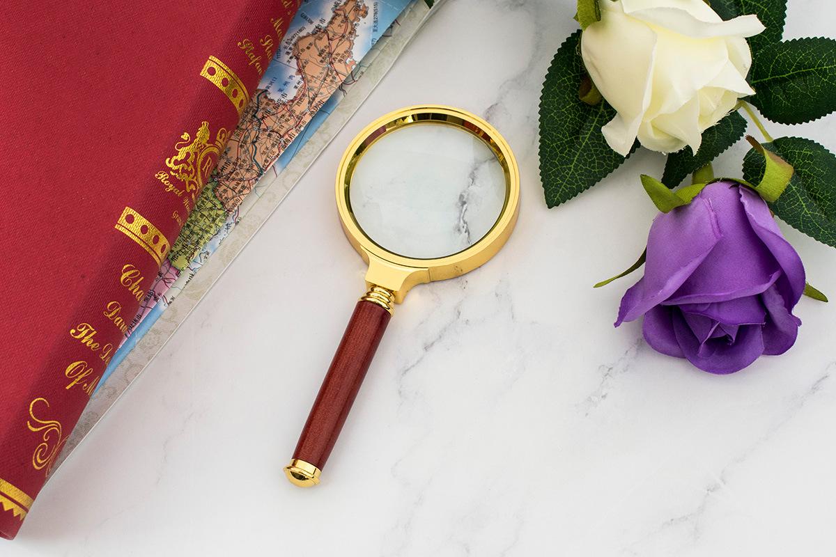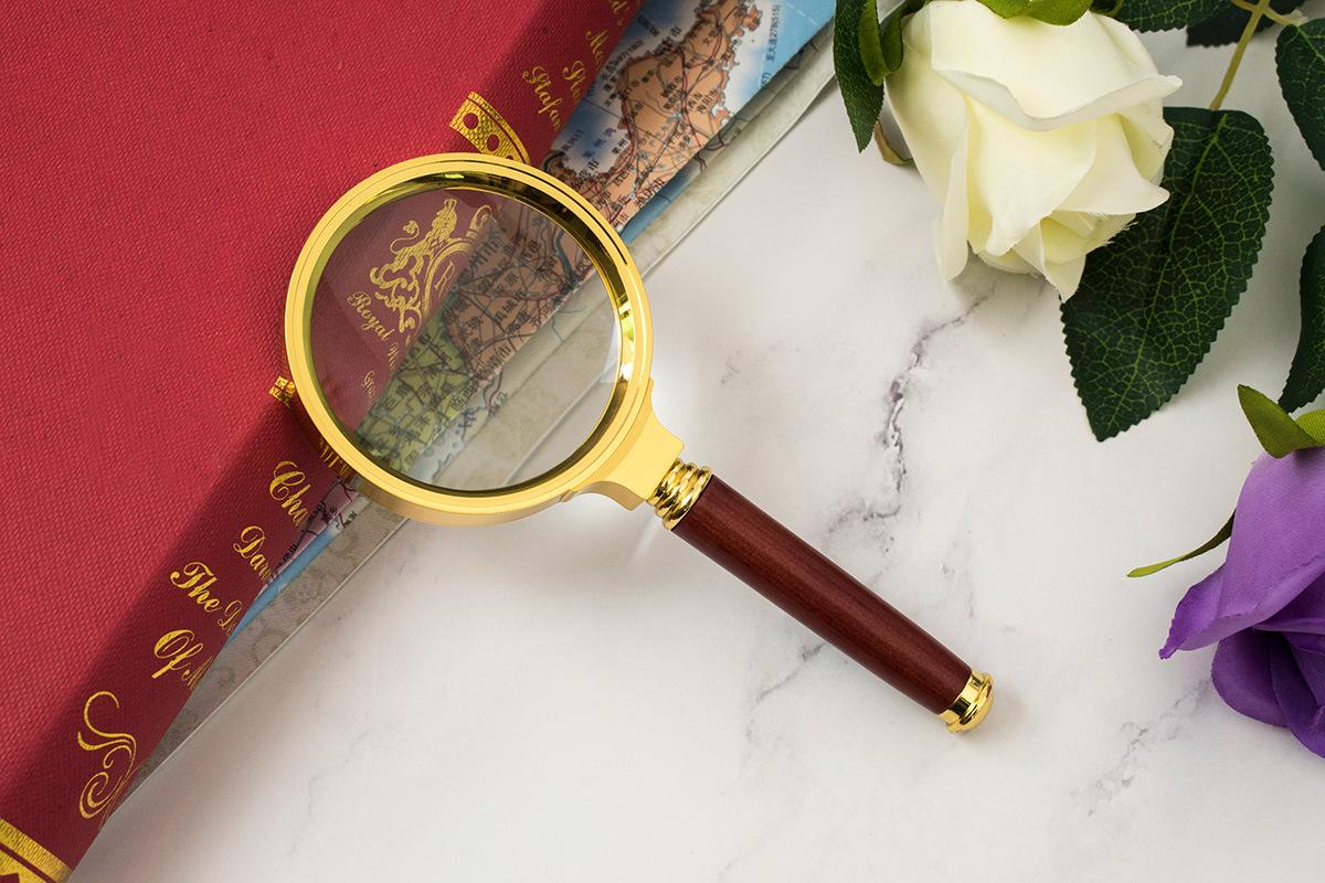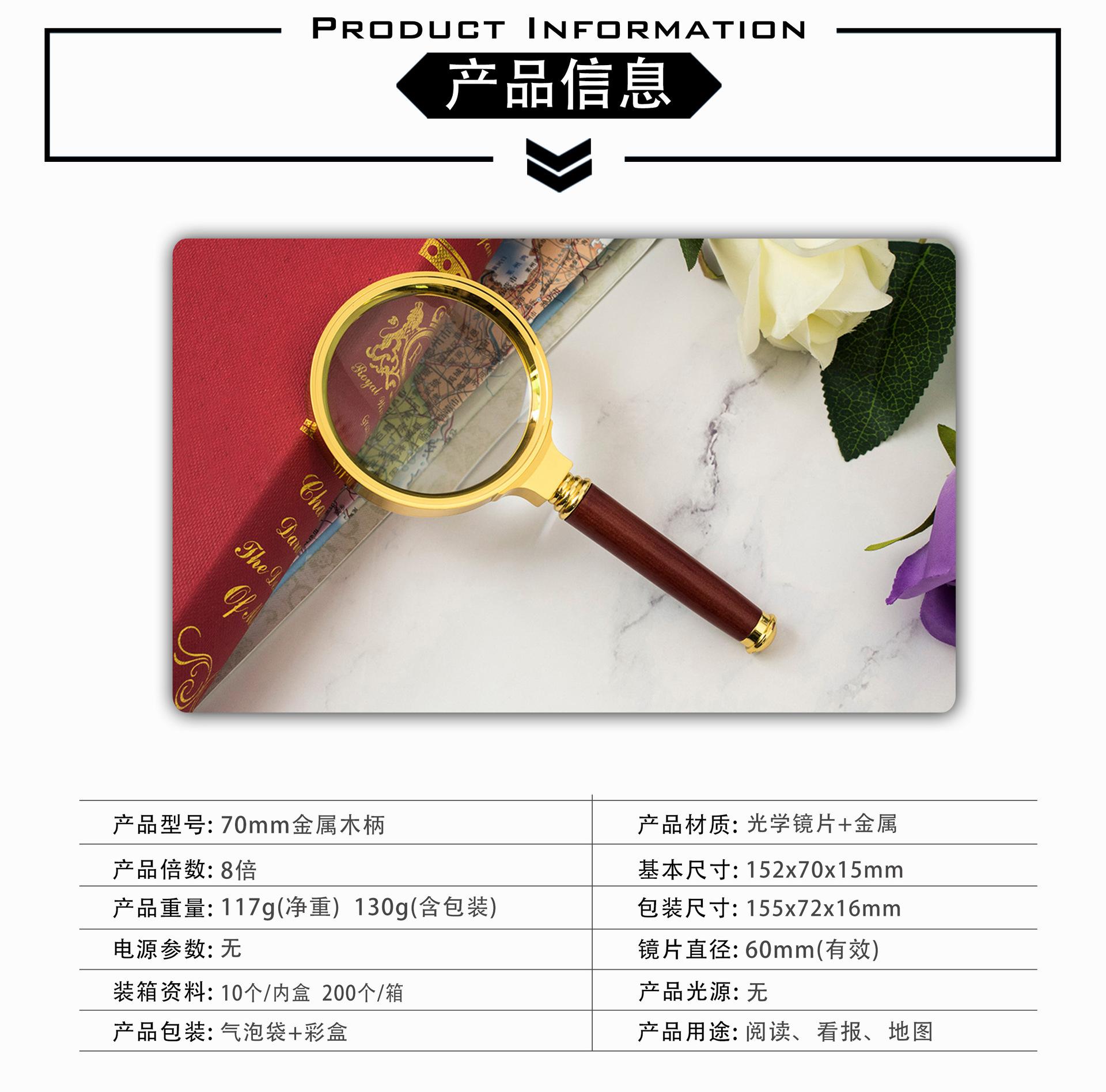Lupa de mano de 70 mm con mango de madera, 8 aumentos, totalmente metálica, para leer periódicos, ideal para ancianos y niños, HD.