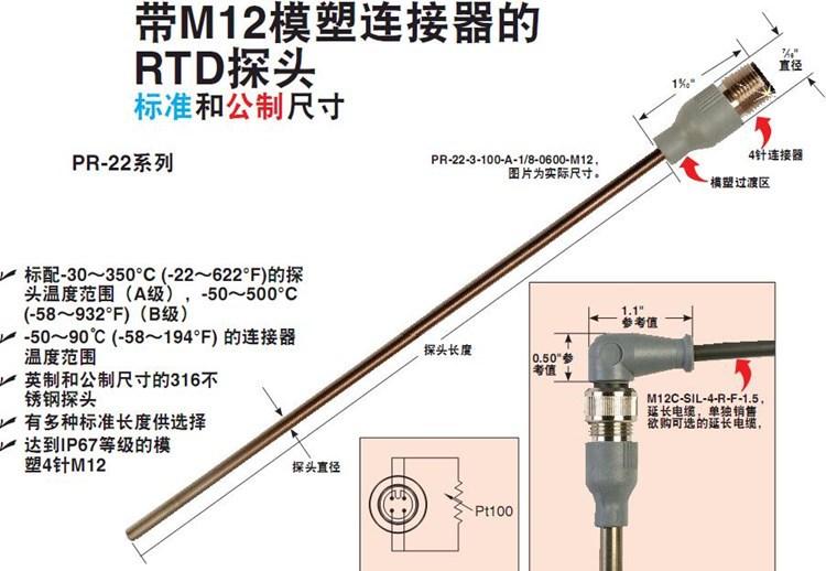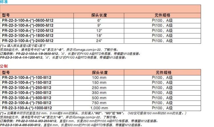 Resistencia térmica americana Omega PR-22-3-100-1/3-M3-100-150-250-M12