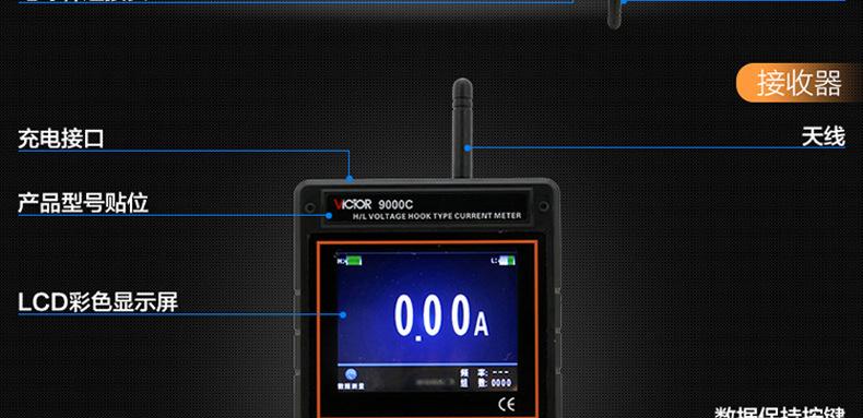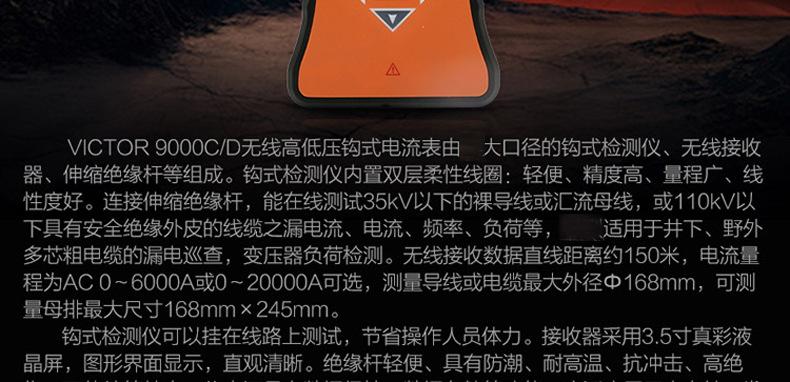 Amperímetro inalámbrico de alto voltaje VICTOR Victory Instrument VC9000C, medidor de pinza de línea de alto voltaje, amperímetro tipo gancho