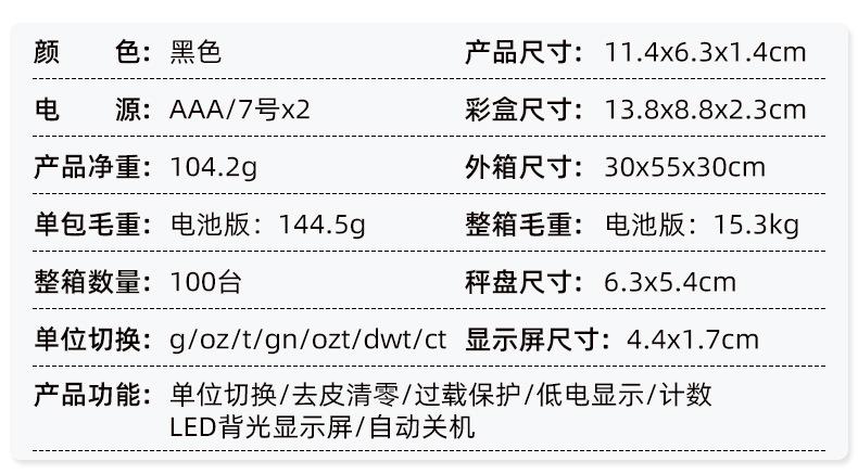 Tamaño del plato de pesaje: 6.3x5.4cm