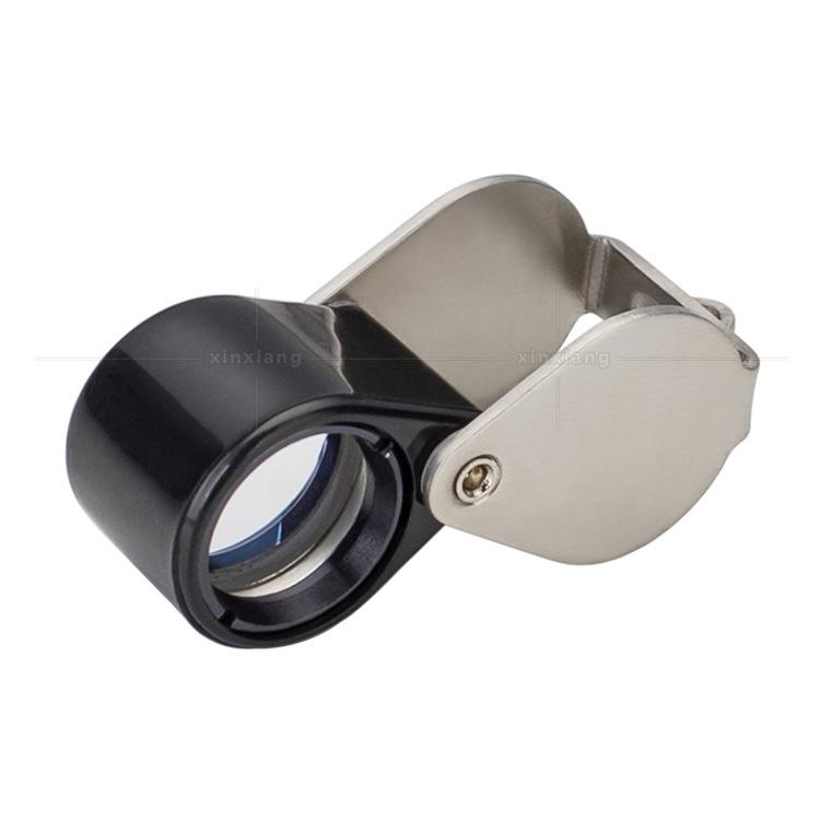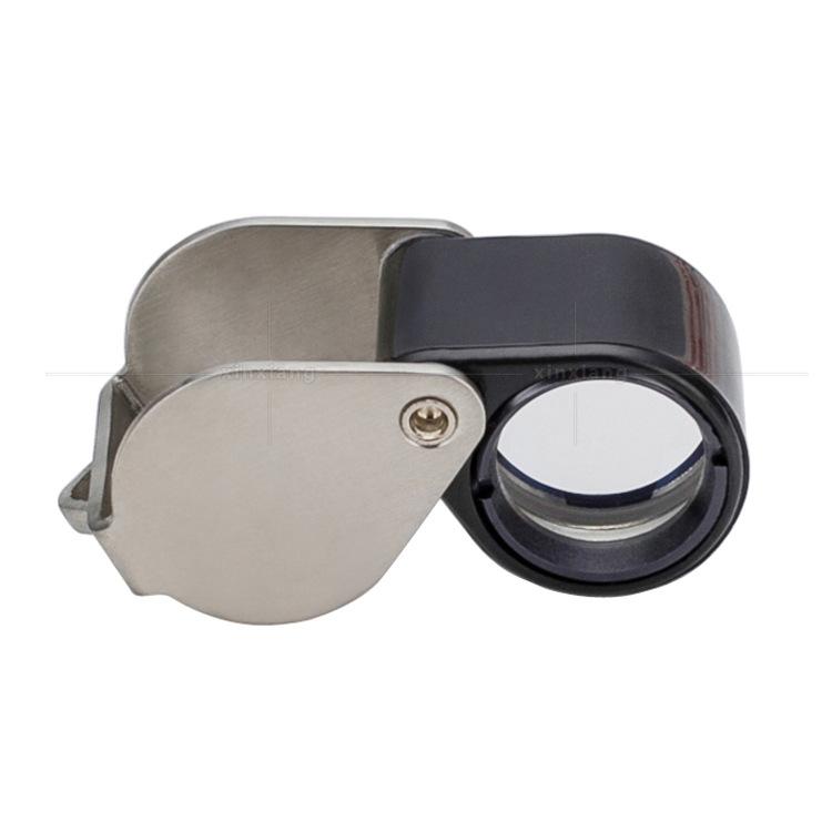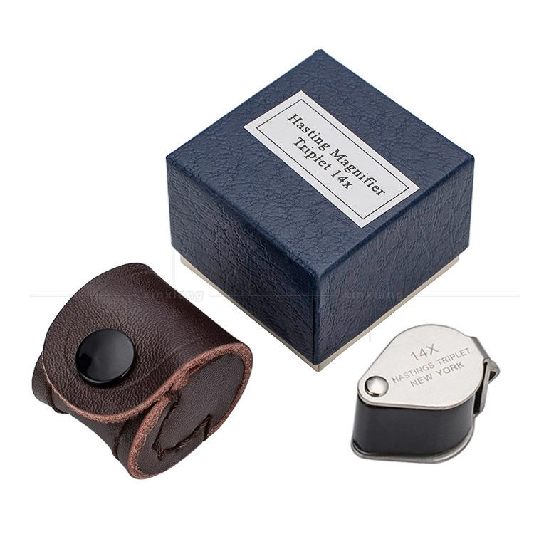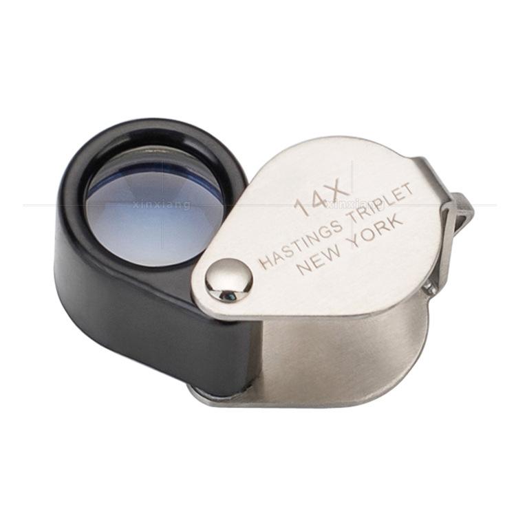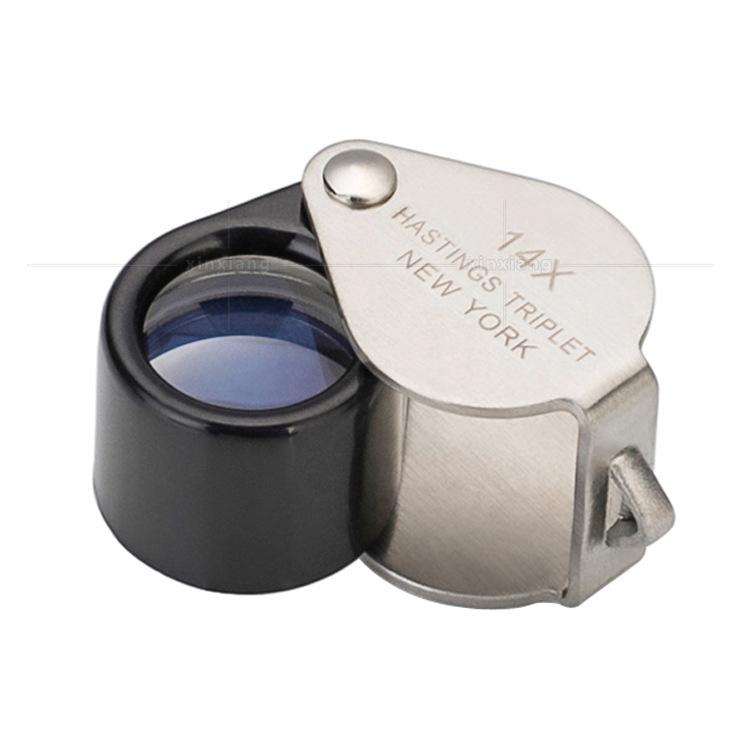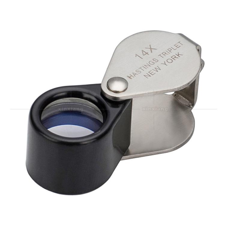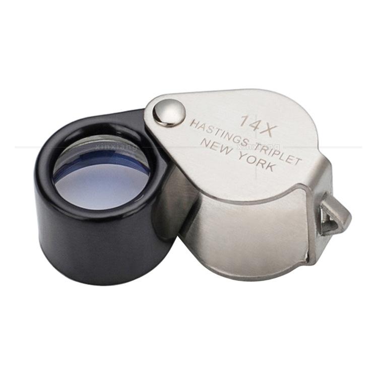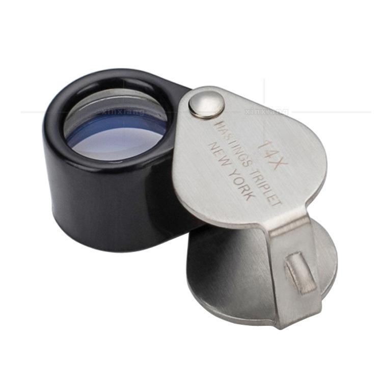 Lupa de alta potencia de 14 aumentos de 12 mm con identificación antigua de jade y diamante, plegable, de metal, con estuche de cuero.