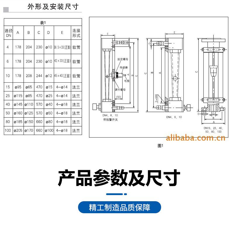 El tendero recomienda el medidor de flujo de rotor de vidrio Lzb-15, medidor de flujo de aire con conector de brida, conveniente para instalación vertical