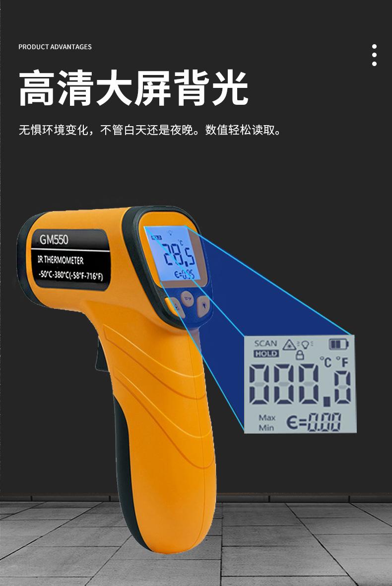 Instrumento de medición por infrarrojos Termómetro electrónico Termómetro infrarrojo Termómetro sin contacto Pistola de temperatura DT500