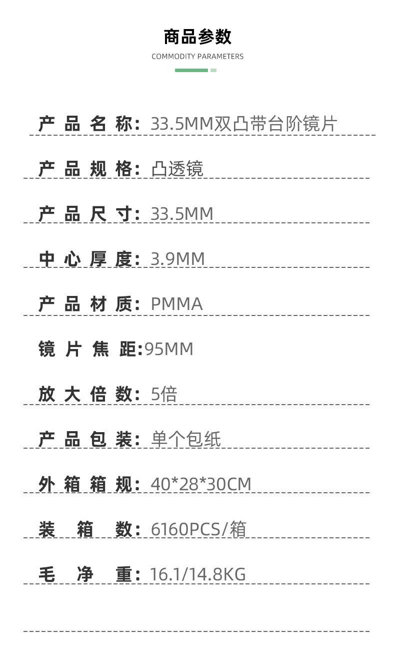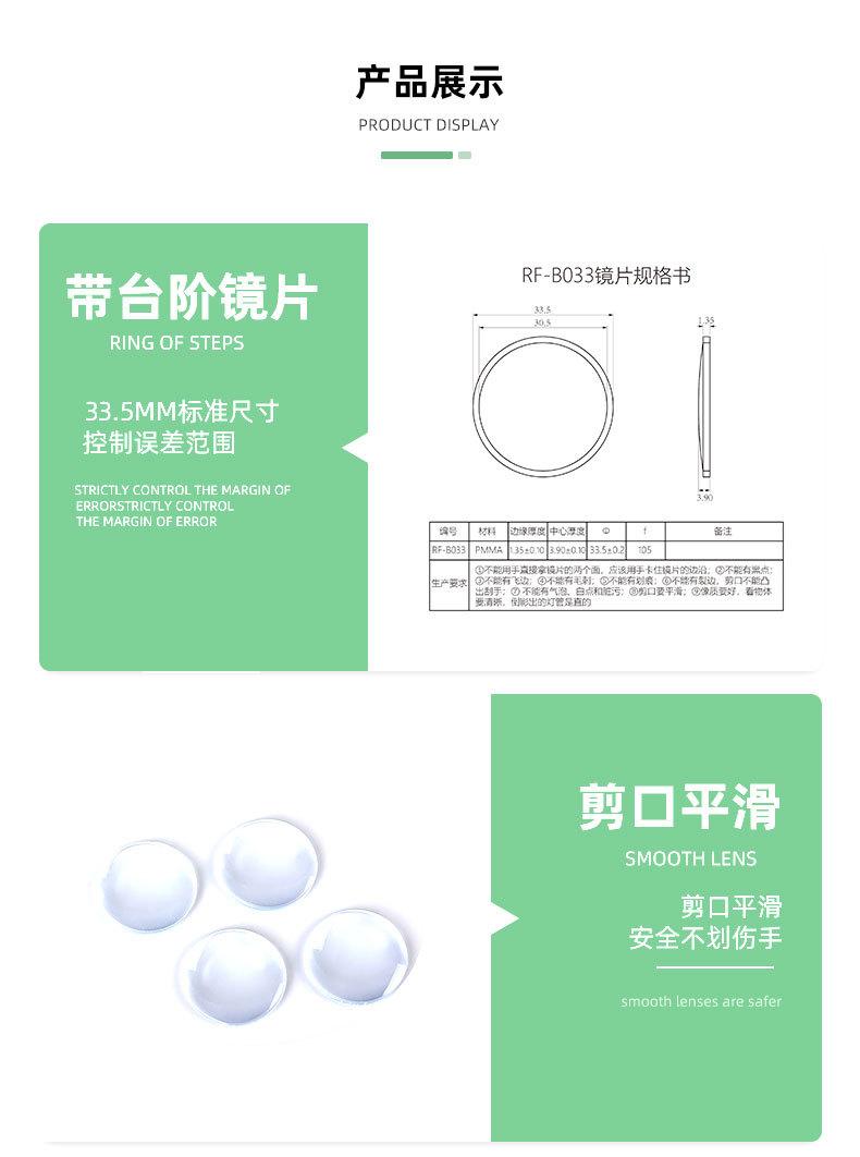 Lente biconvexa de 33.5 mm con lente convexa acrílica escalonada Lente de aumento de plástico de alta potencia HD Personalización de moldes