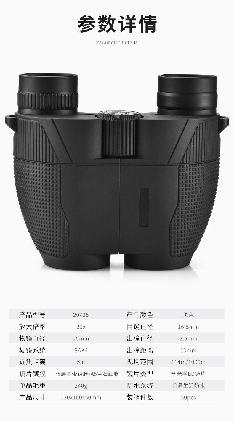 Binoculares pequeños Paul 20X25 personalizados OEM de fábrica HD alta potencia para exteriores anti-Paul