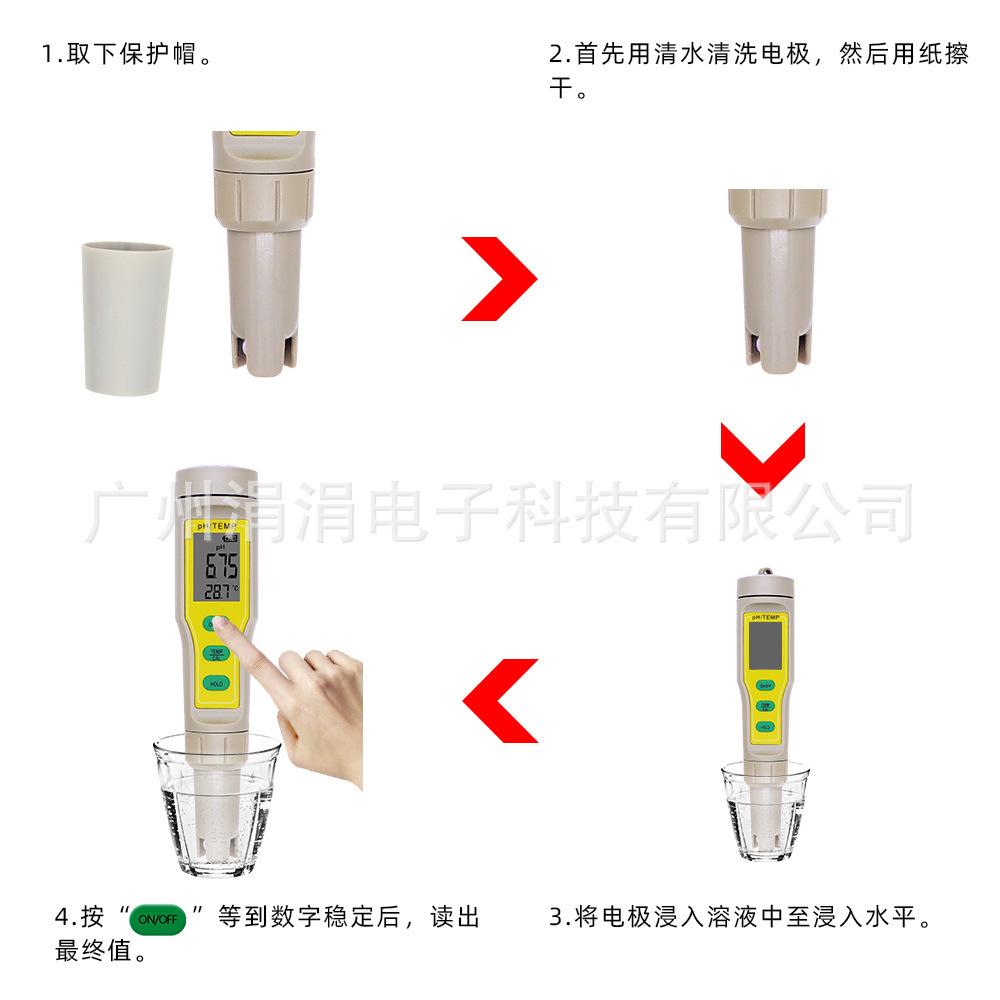 Aplicaciones: agua potable, agua del grifo, agua de pozo, agua de mar, jugo, bebidas, leche, yogur, solución de galvanoplastia, aguas residuales industriales, agua de peceras, agua de piscinas, líquido de revelado fotográfico, laboratorio, acuicultura, detergente, tinta a base de agua, anticongelante para automóviles, tinte para el cabello, agua para permanente, cosméticos, enzimas, valor de pH de la orina humana, etc.