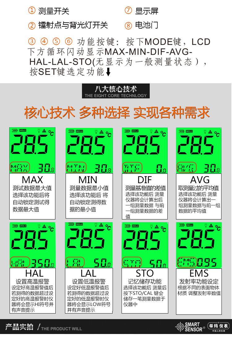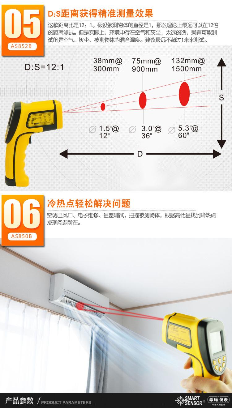 Termómetro infrarrojo de mano Hima AS852B, termómetro infrarrojo sin contacto, termómetro de mano