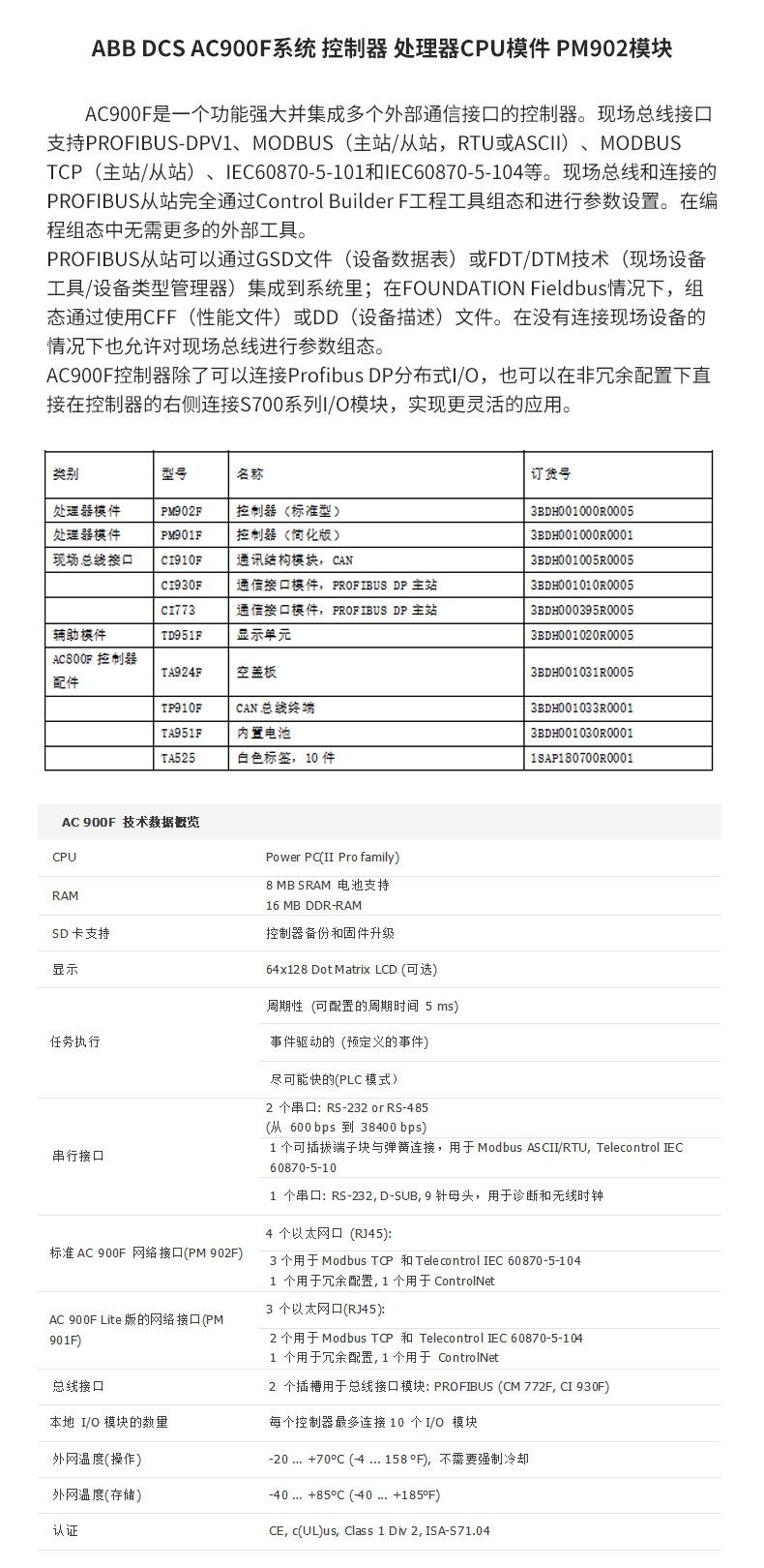 Módulo CPU del controlador del sistema ABB DCS AC900F, módulo PM902