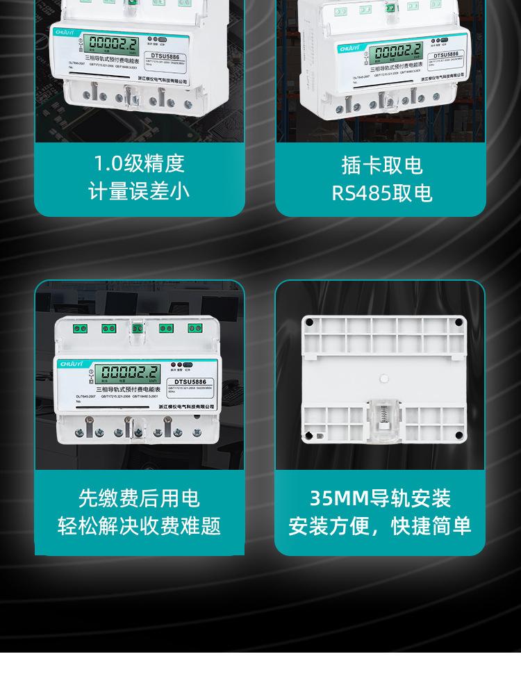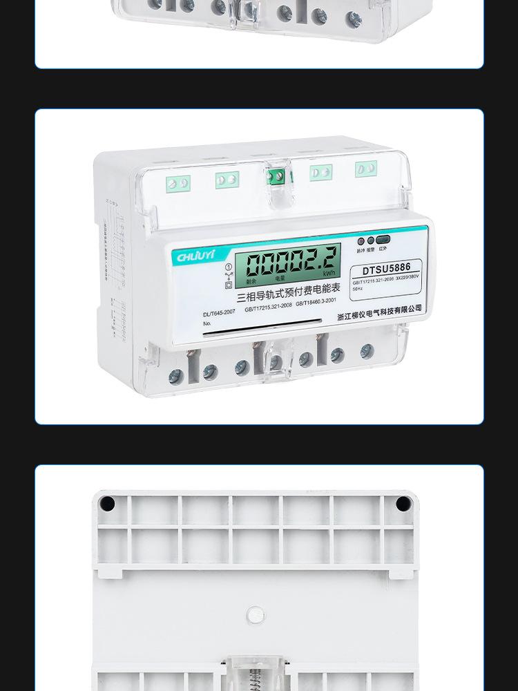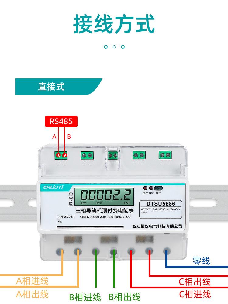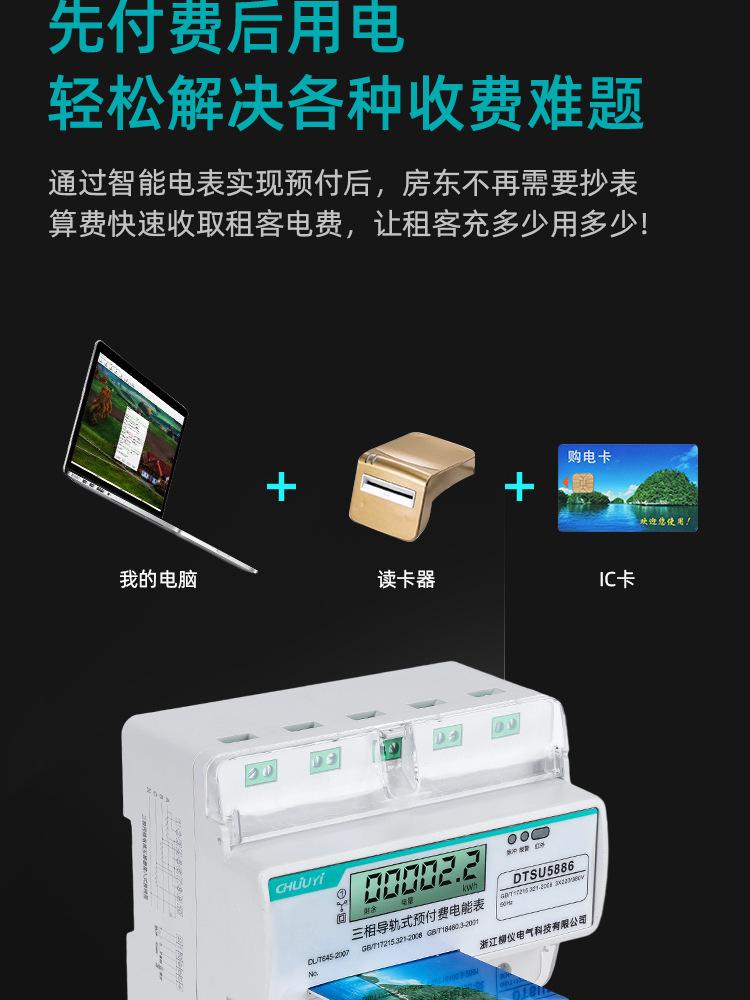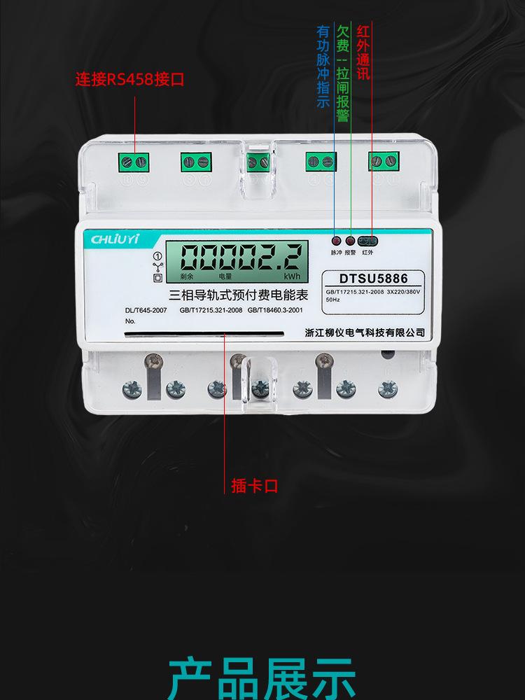 Medidor de energía trifásico doméstico montado en carril con recarga por tarjeta, comunicación 485, medidor inteligente prepago