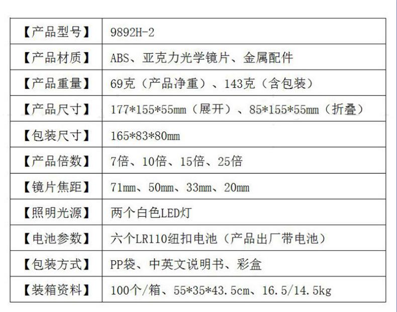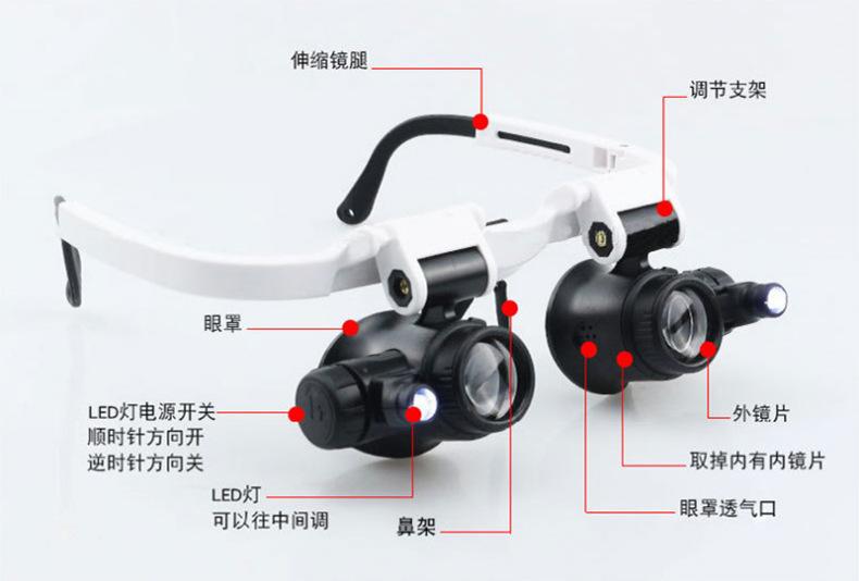 9892H-2 tipo gafas reloj multifuncional mantenimiento inspección e identificación lupa de alta potencia con luz LED