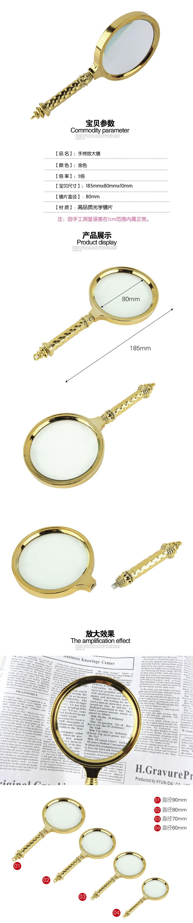Material: plástico chapado en oro, lente óptica, mango elegante.