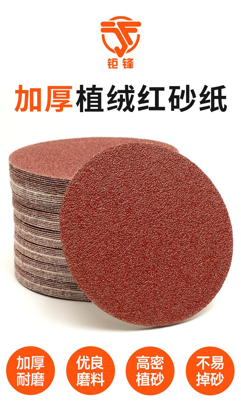 Papel de lija de flocado de arena roja afilada de 4 pulgadas y 5 pulgadas, hoja cepillada de terciopelo posterior, disco de pulido de papel de lija autoadhesivo, papel de lija al por mayor