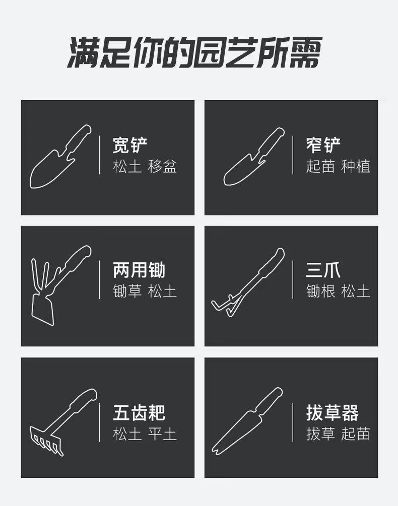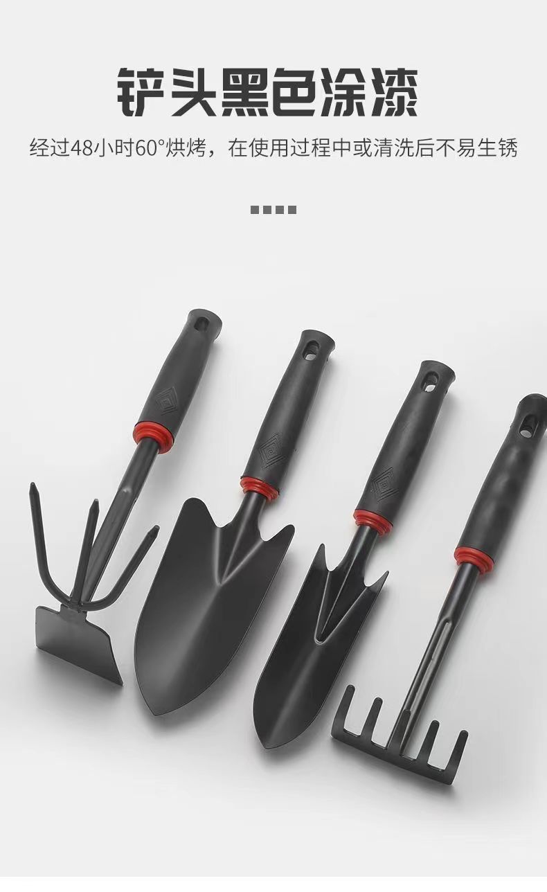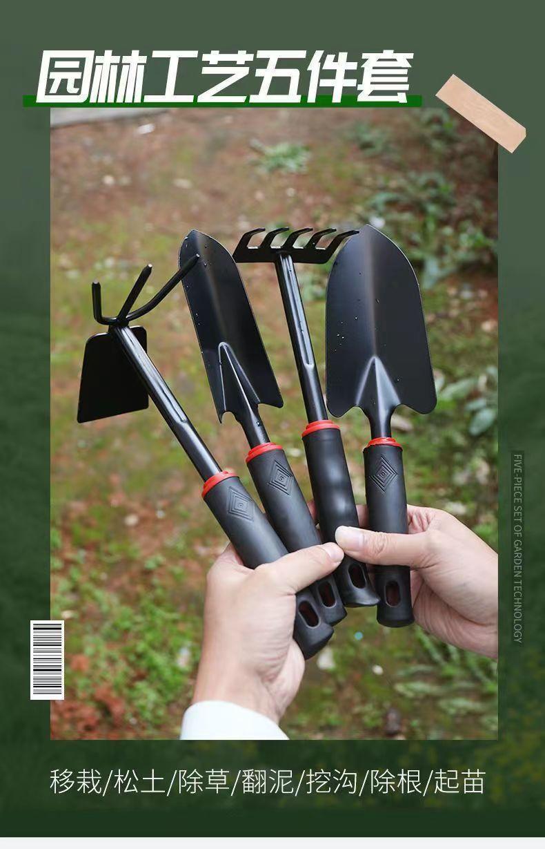 Thickened Medium Wide Shovel-Black, Thickened medium five-tooth rake-black, Thickened medium dual-purpose hoe-black