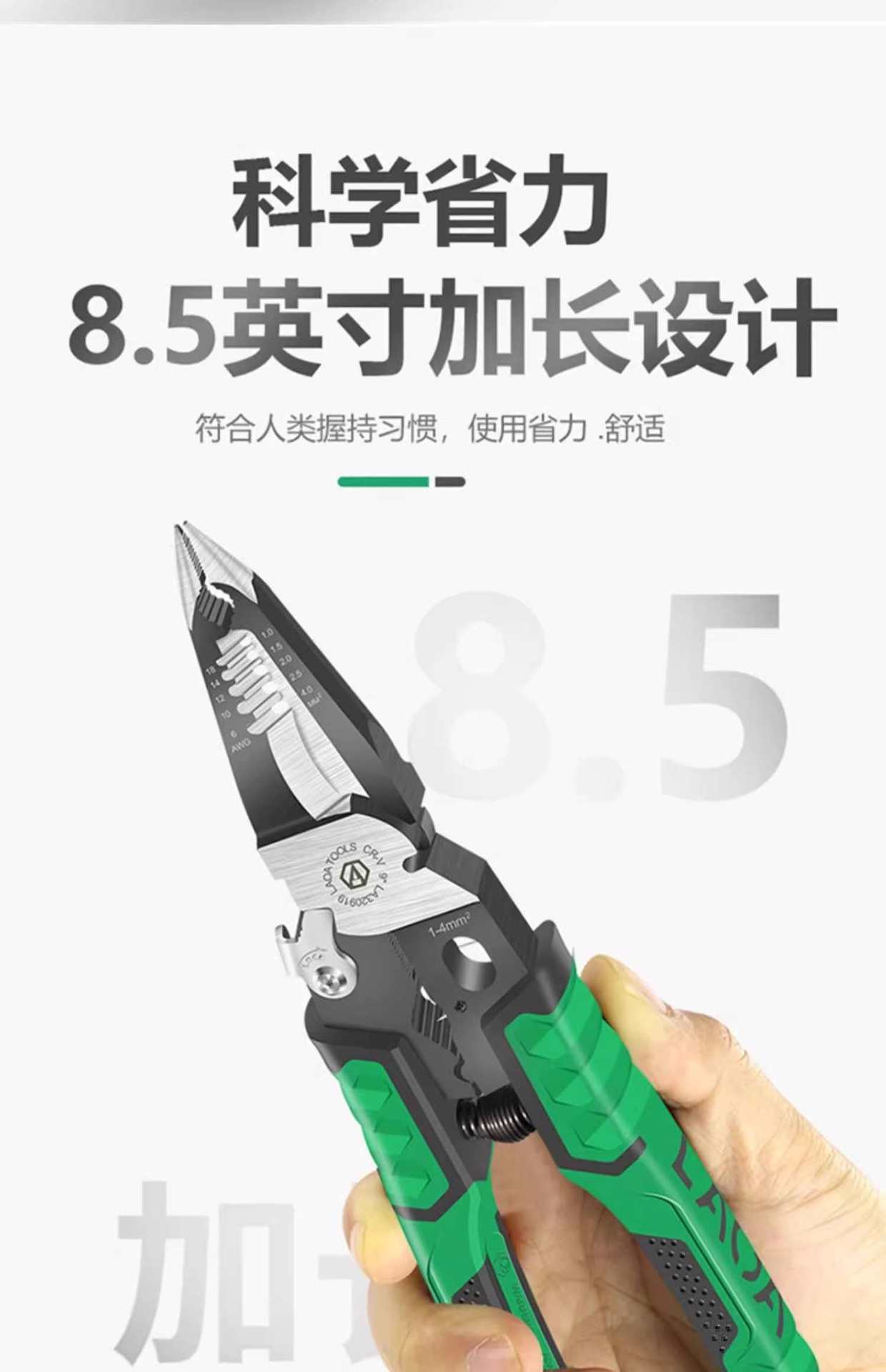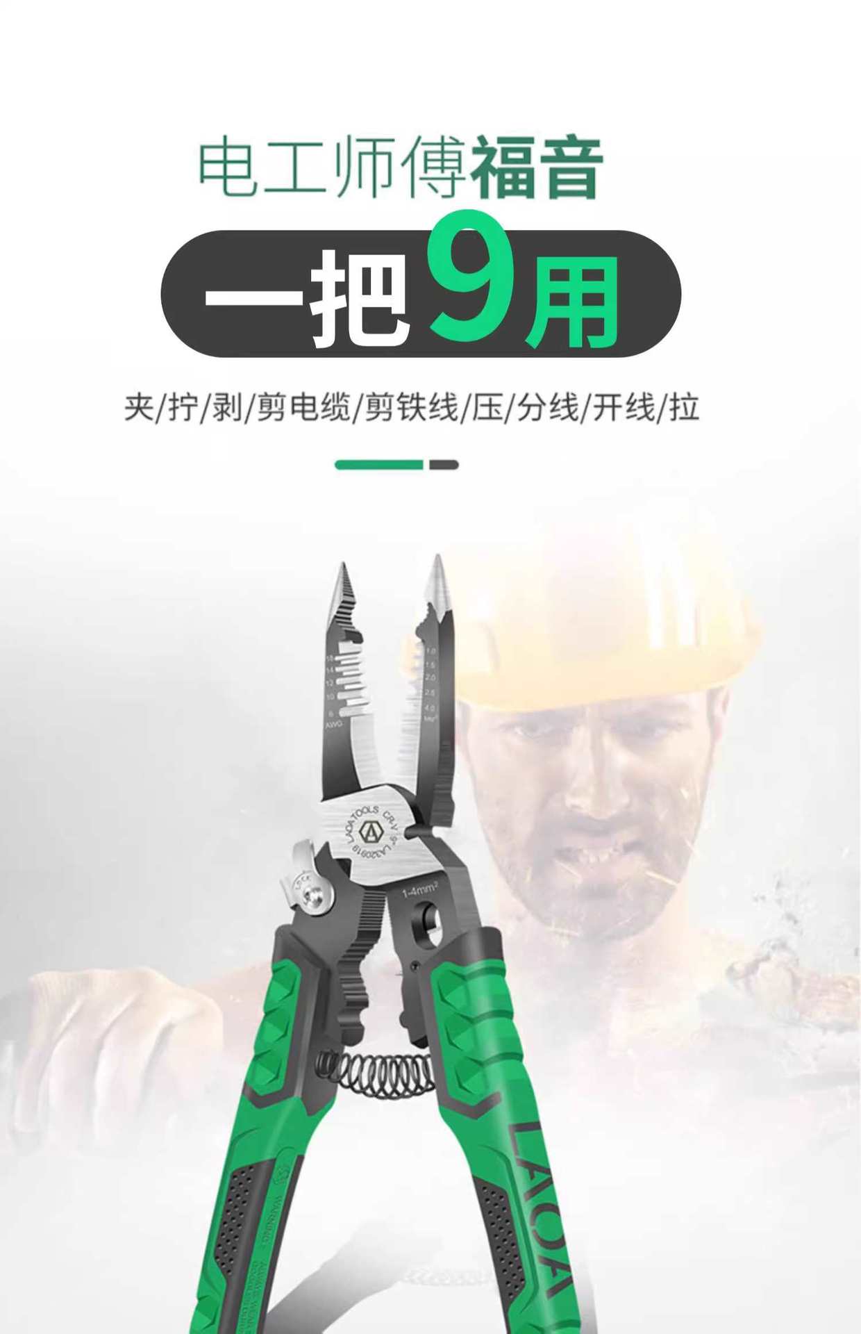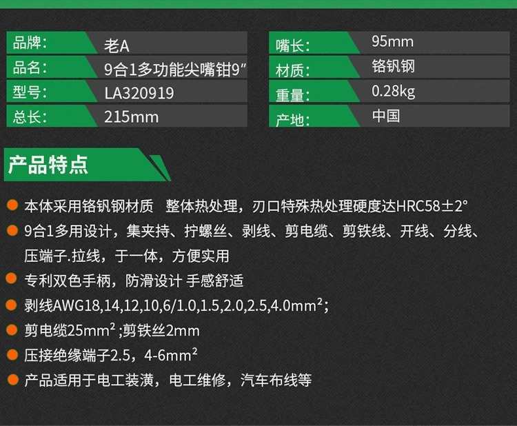 Alicates de punta puntiaguda multifuncionales 9 en 1 antiguos, alicates pelacables de grado industrial, alicates de corte de cables, mini alicates eléctricos, alicates manuales