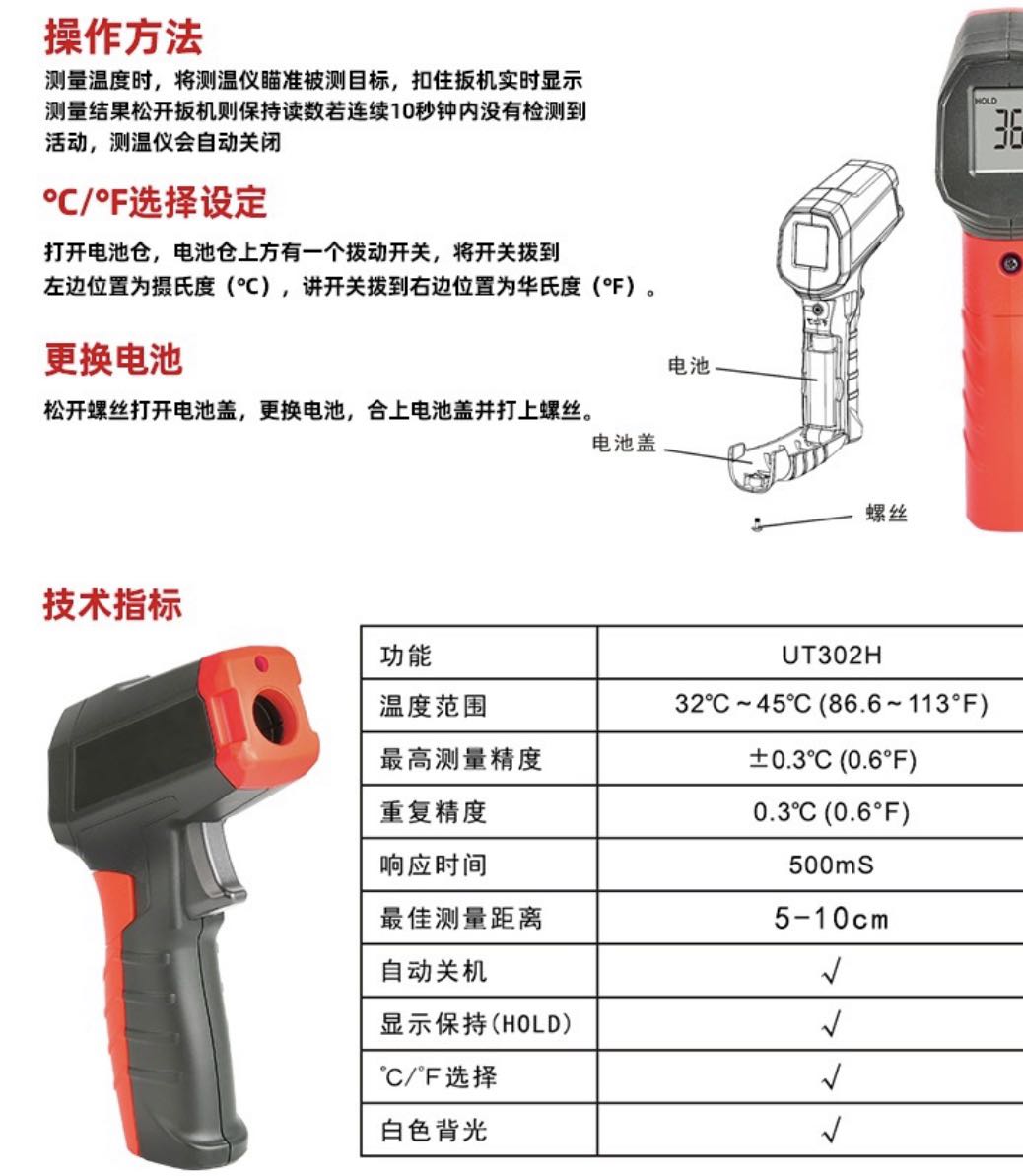 Termómetro infrarrojo temperatura del agua termómetro de aceite UT302B alta precisión pistola de temperatura industrial UT302C termómetro D