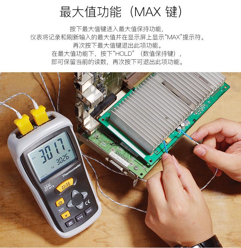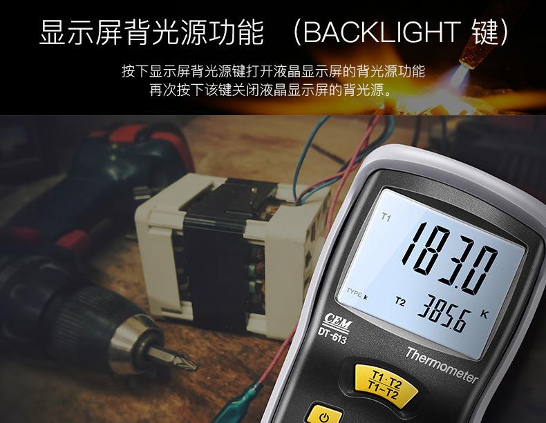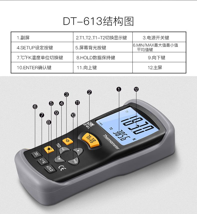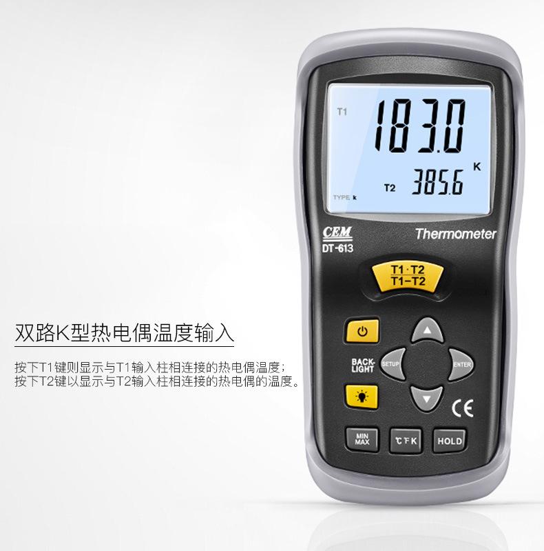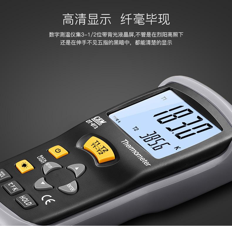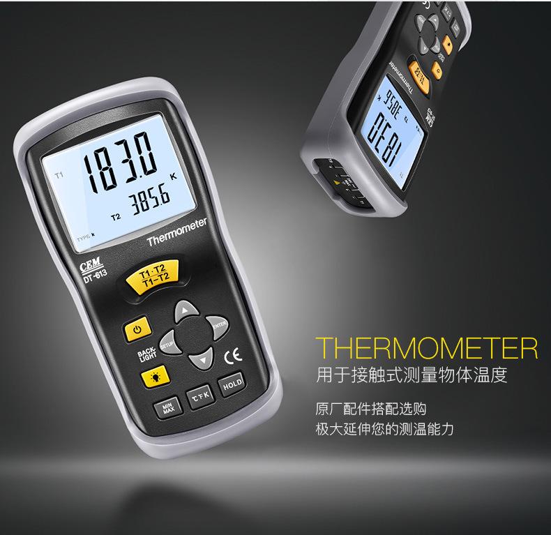 Termómetro termopar CEM Huashengchang DT-613K, termómetro de contacto digital industrial portátil con sonda