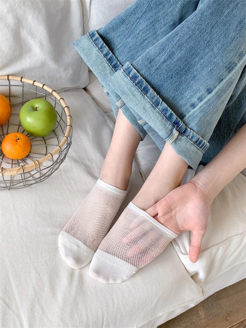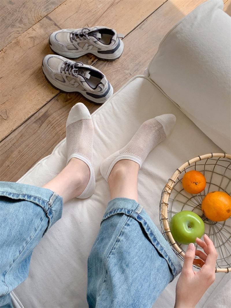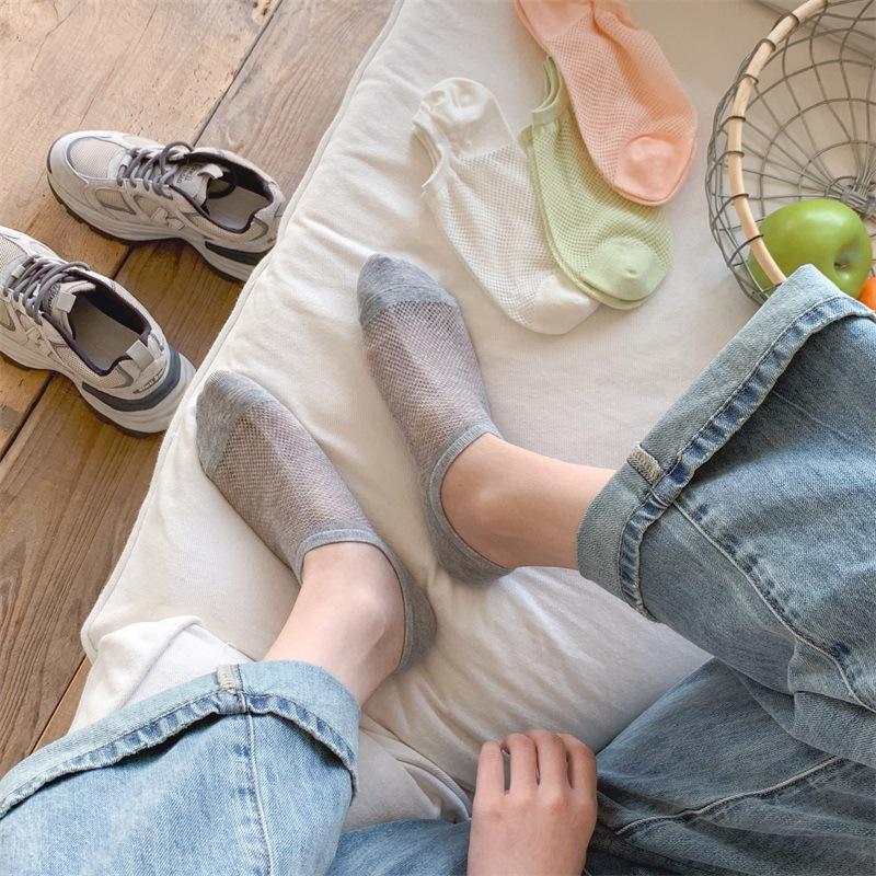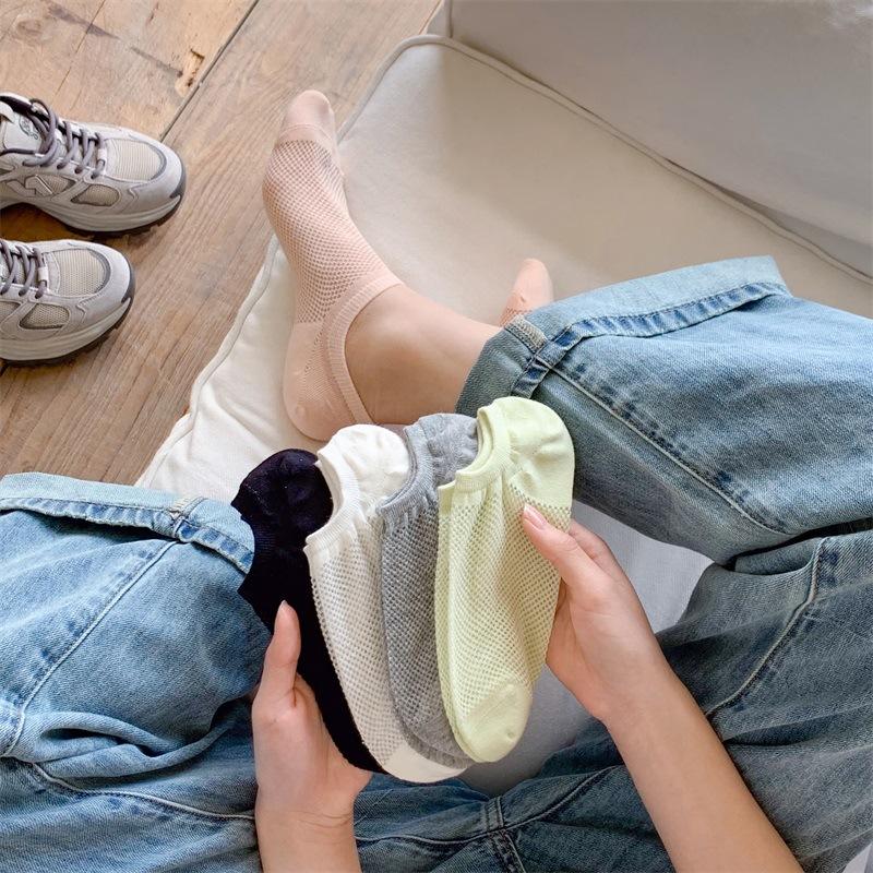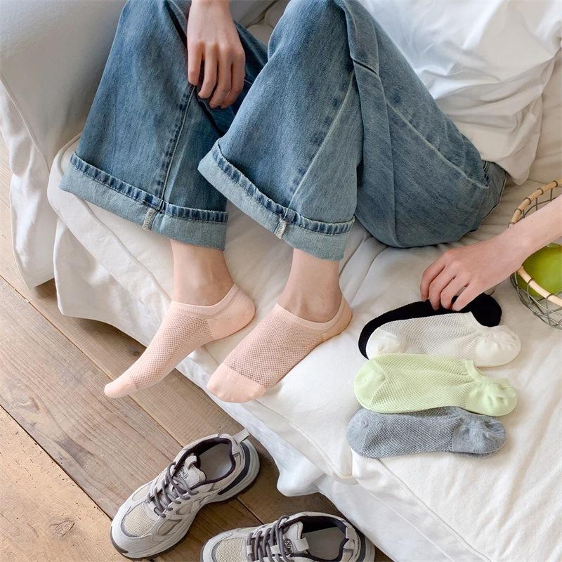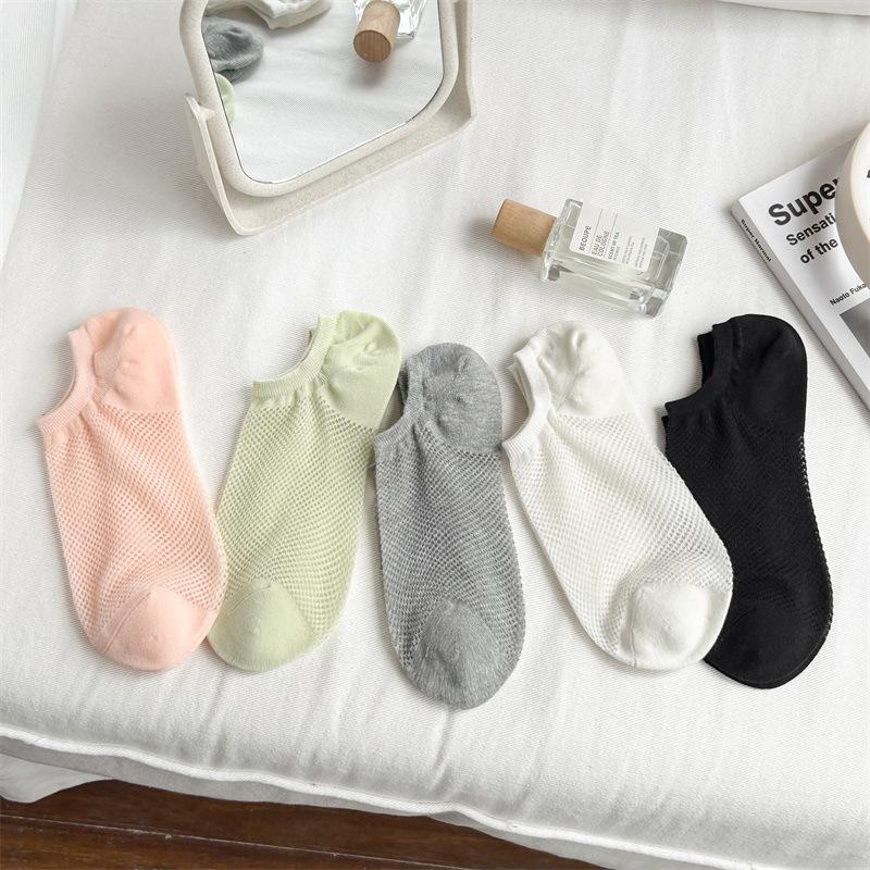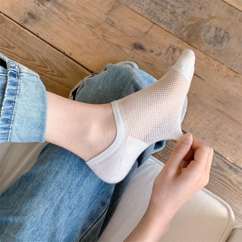 Calcetines de malla para mujer, calcetines cortos de verano, finos, de boca baja, antideslizantes, con calcetines náuticos invisibles transpirables blancos de verano, al por mayor