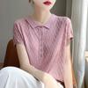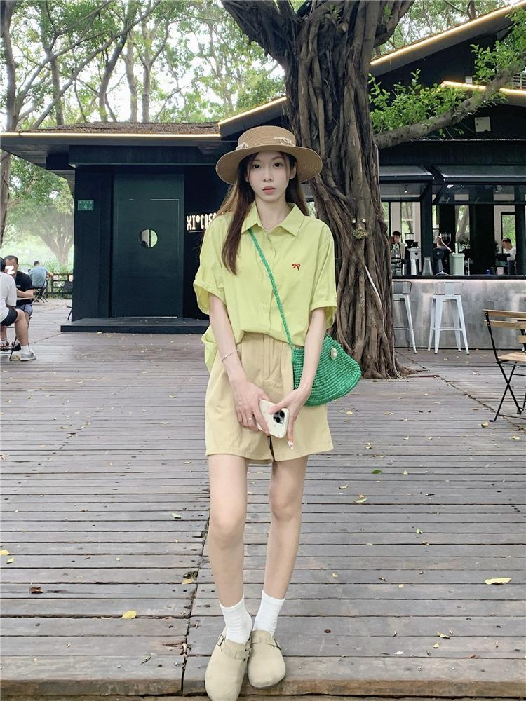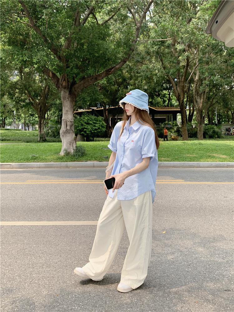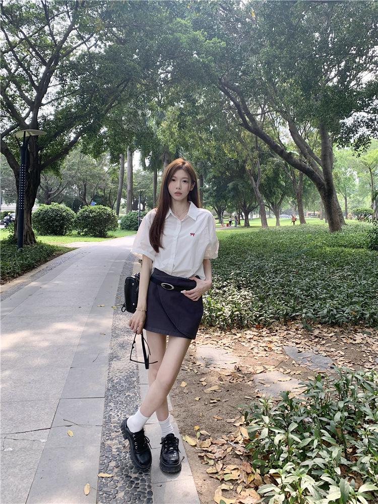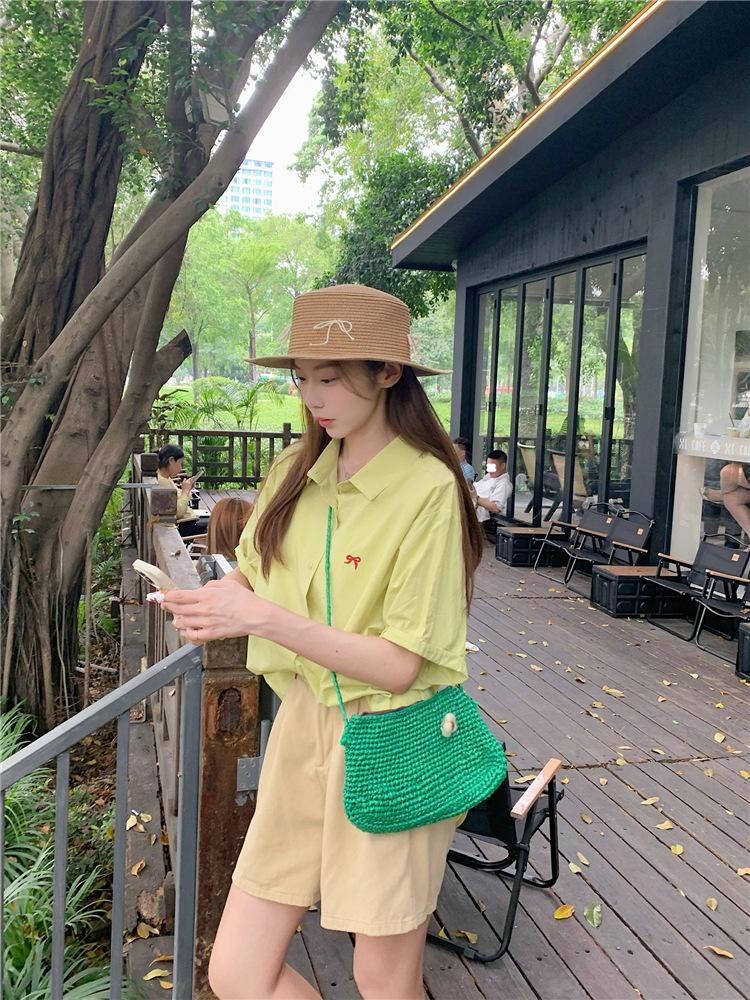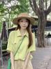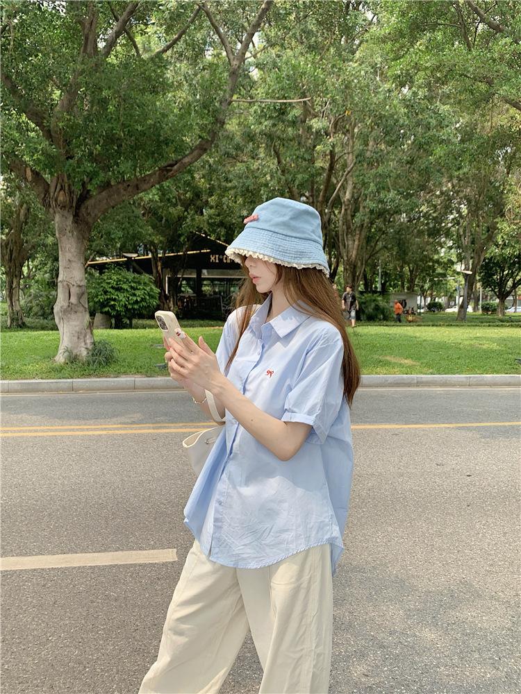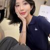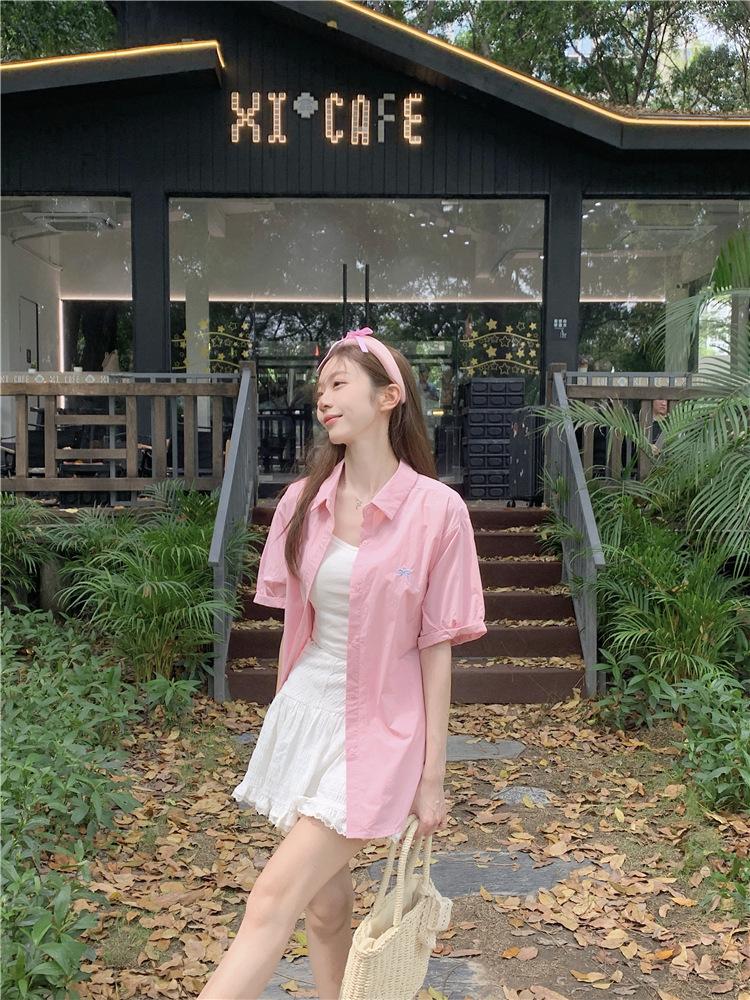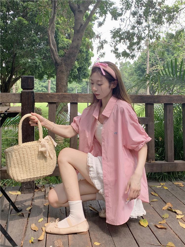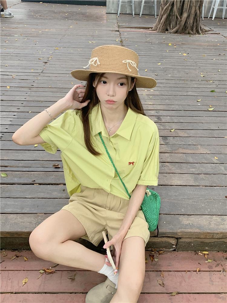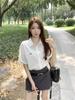 Dai Jiawen 2024 Diseño Polo Cuello Camisa de Manga Corta Abrigo Top de Largo Medio Bordado con Lazo para Mujer Verano