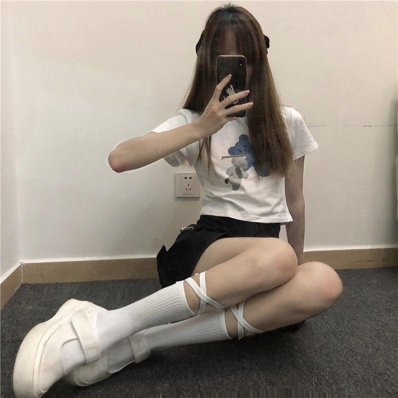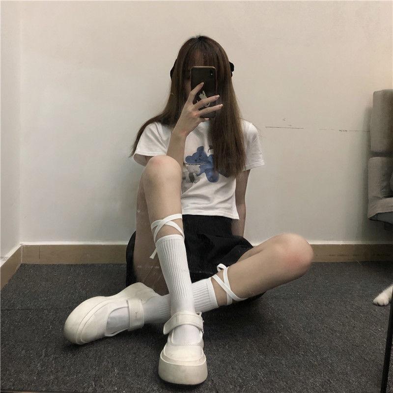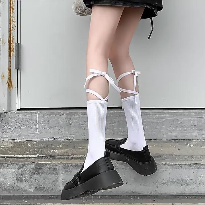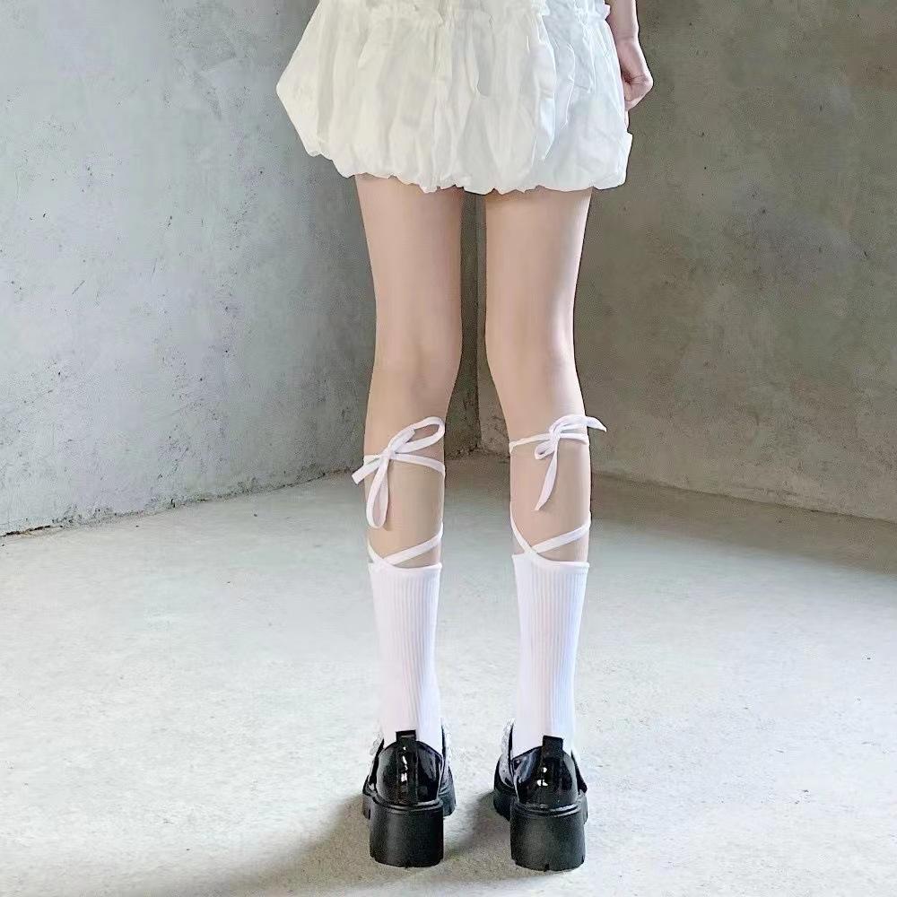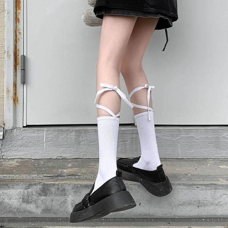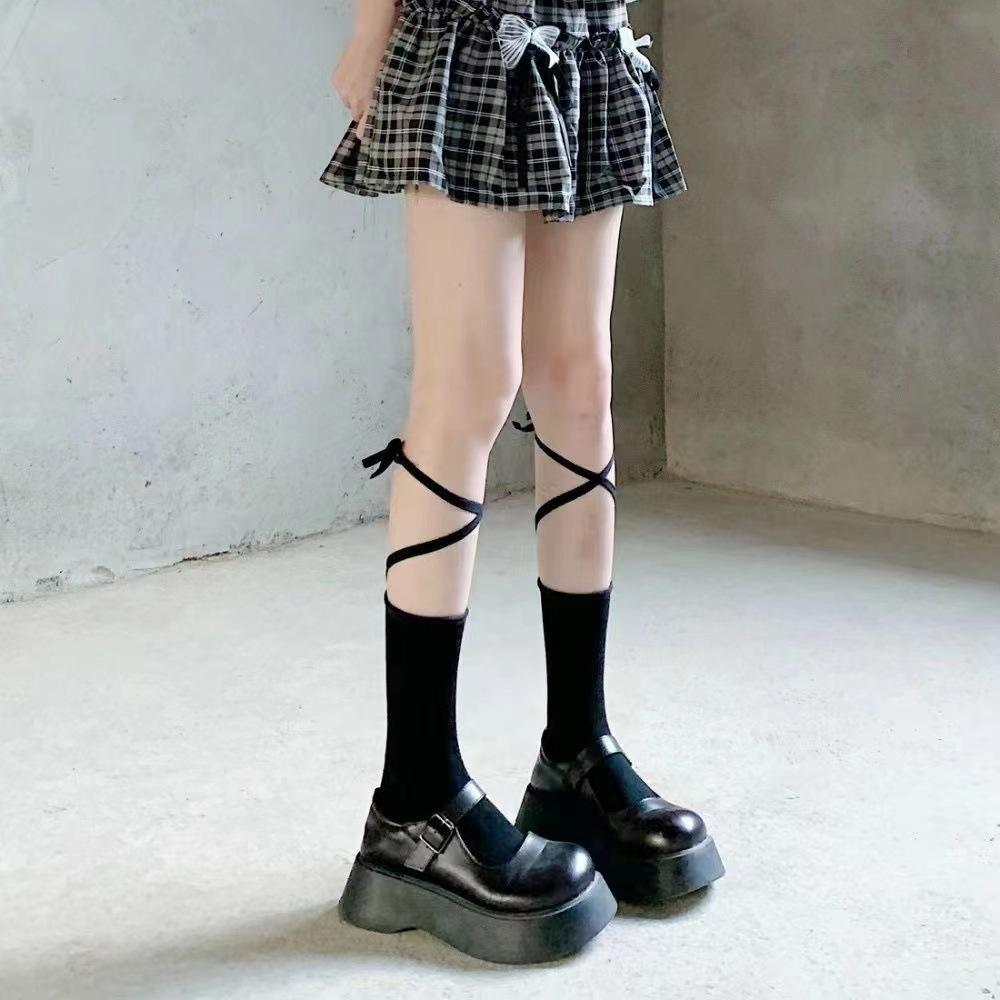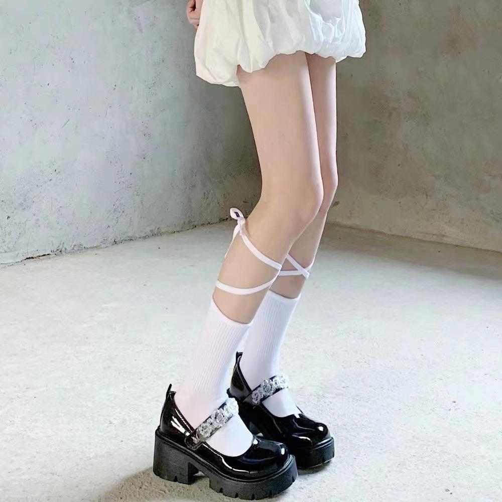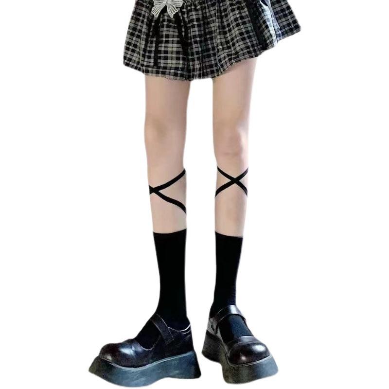 Calcetines de Tirantes Estilo Universitario Ins Calcetines hasta la Pantorrilla Cruzados Leggings Jk Estilo Coreano Modernos Calcetines hasta la Media Pantorrilla Calcetines de Algodón de Verano para Mujer