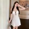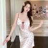 Pijama sexy para mujer con cinta de hielo y almohadilla para el pecho, estampado Pure Desire, camisón fino de seda, ropa de casa con borde cruzado