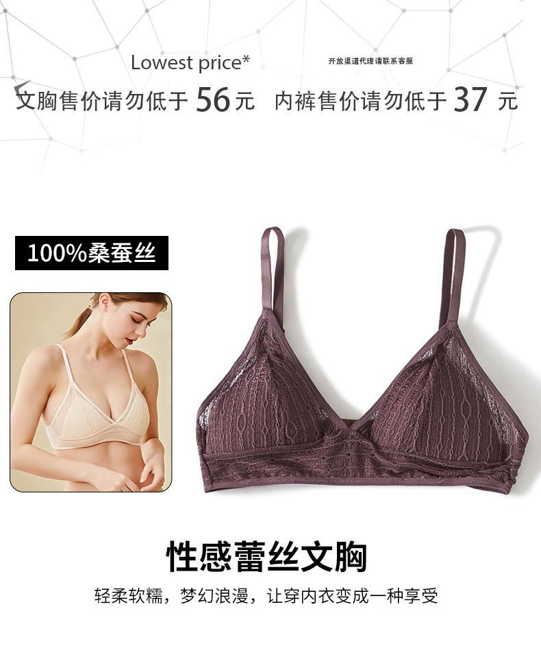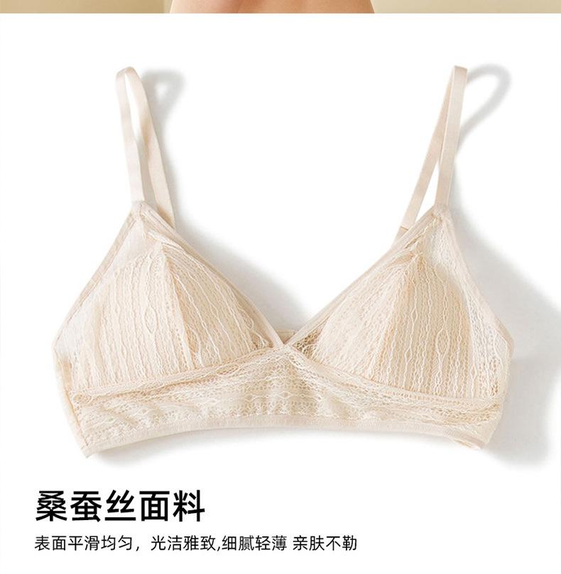 Yuyue verano nuevo seda de morera sujetador de tubo delgado para mujer seda sexy espalda hermosa encaje transpirable copa triangular sujetador al por mayor