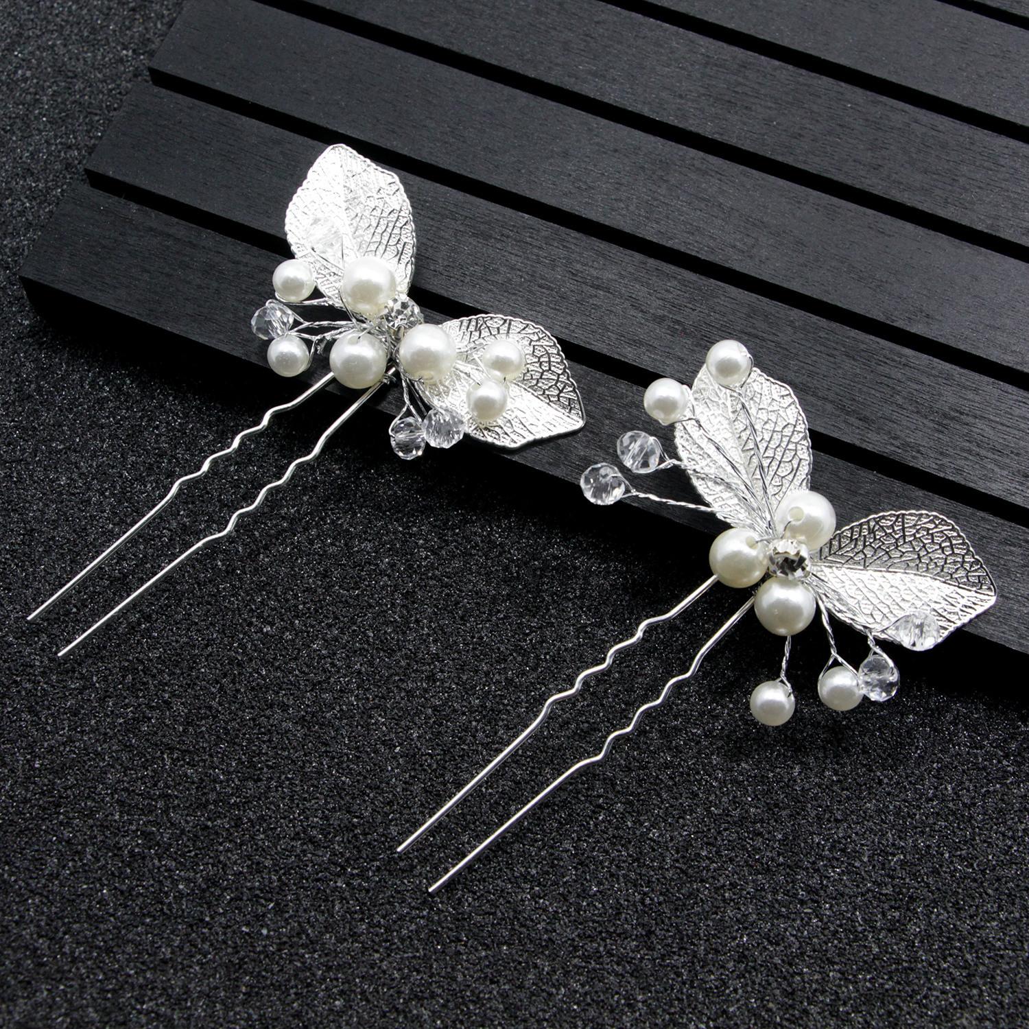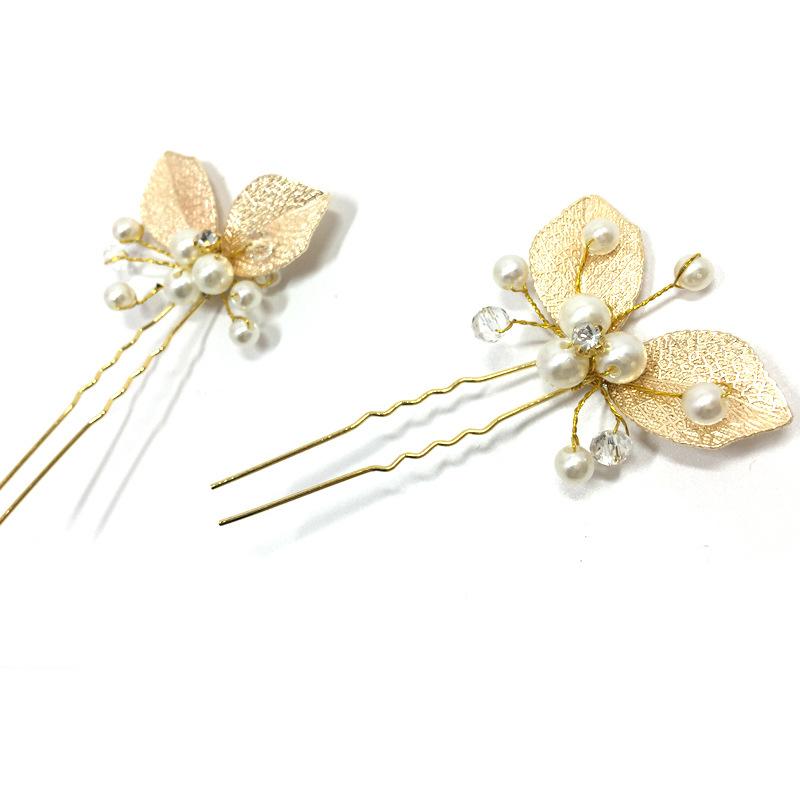 Horquilla barroca en forma de U con hojas de árbol doradas, hecha a mano con perlas y diamantes de imitación, accesorio para novia o boda, tocado para el cabello.
