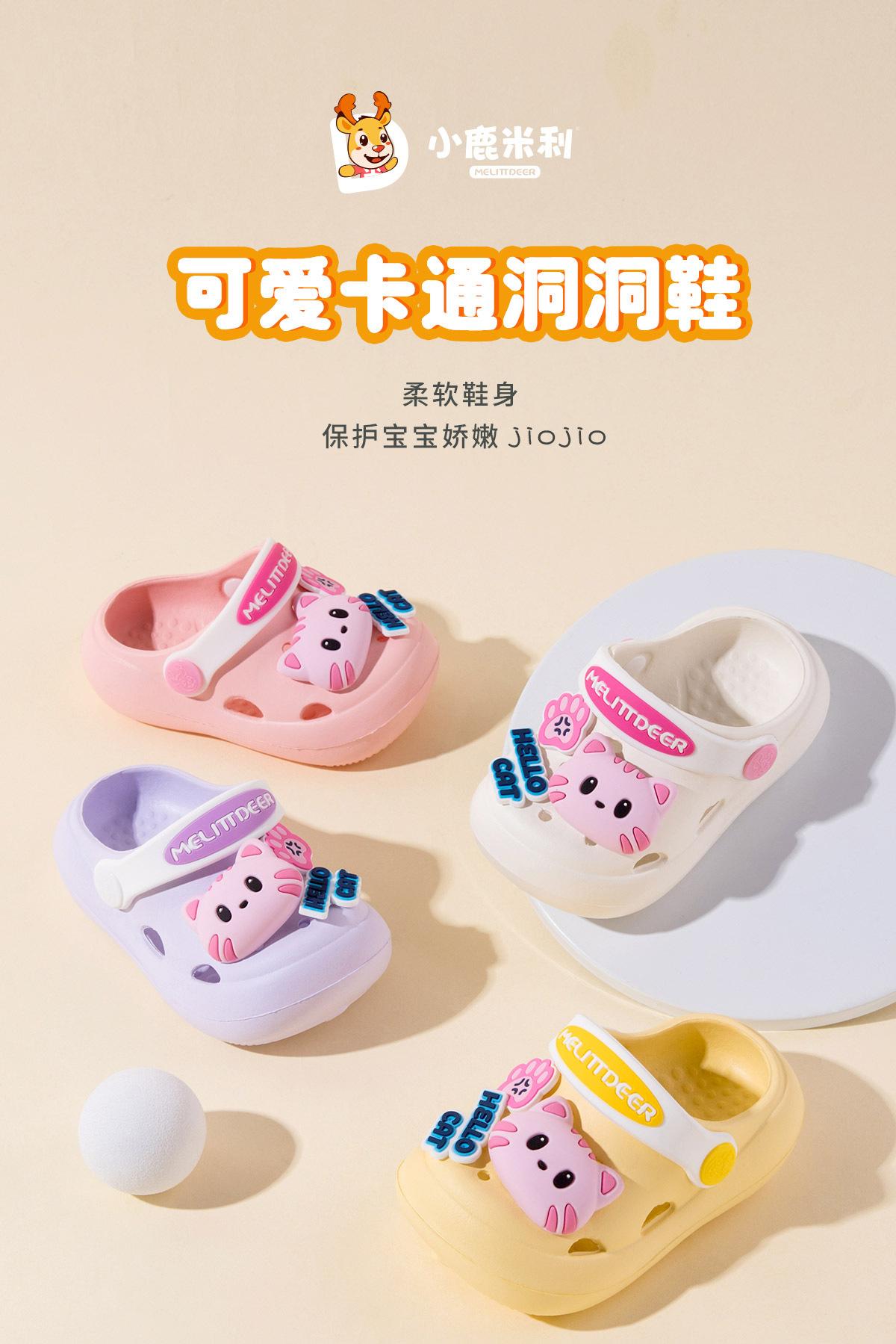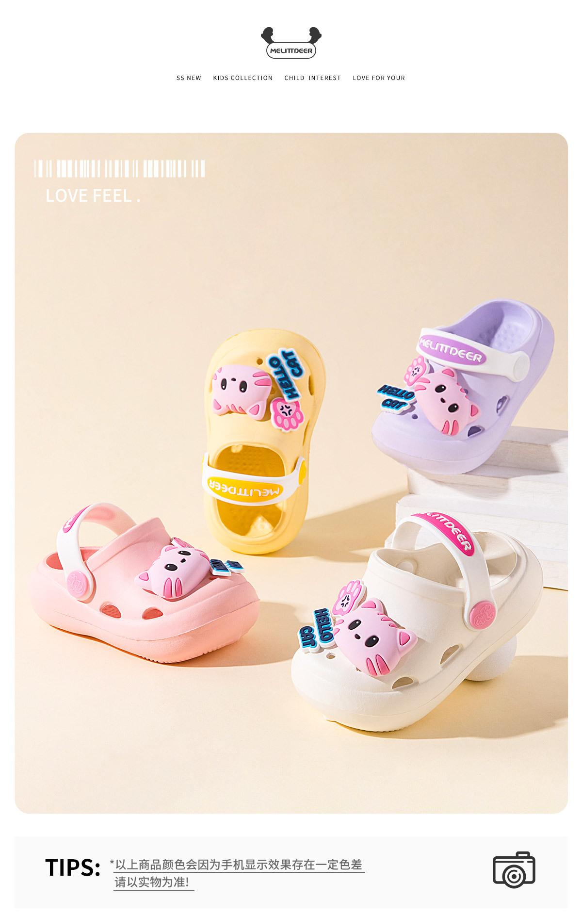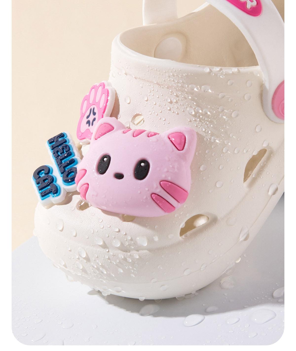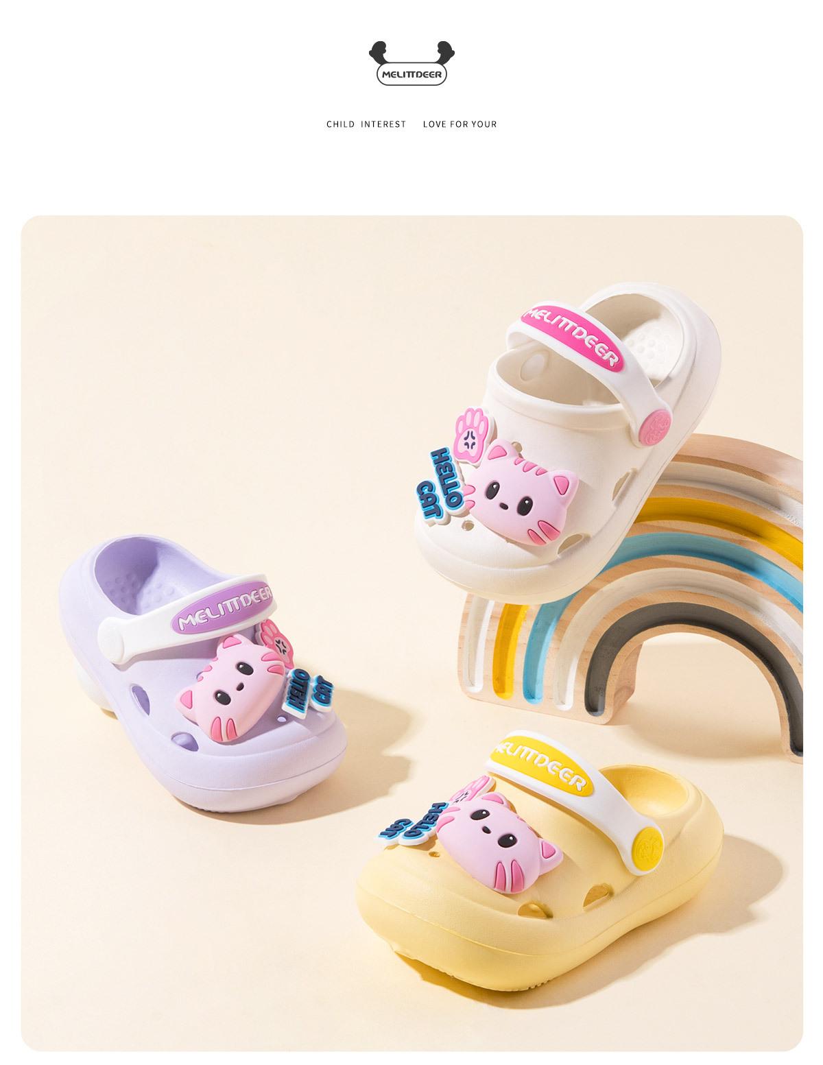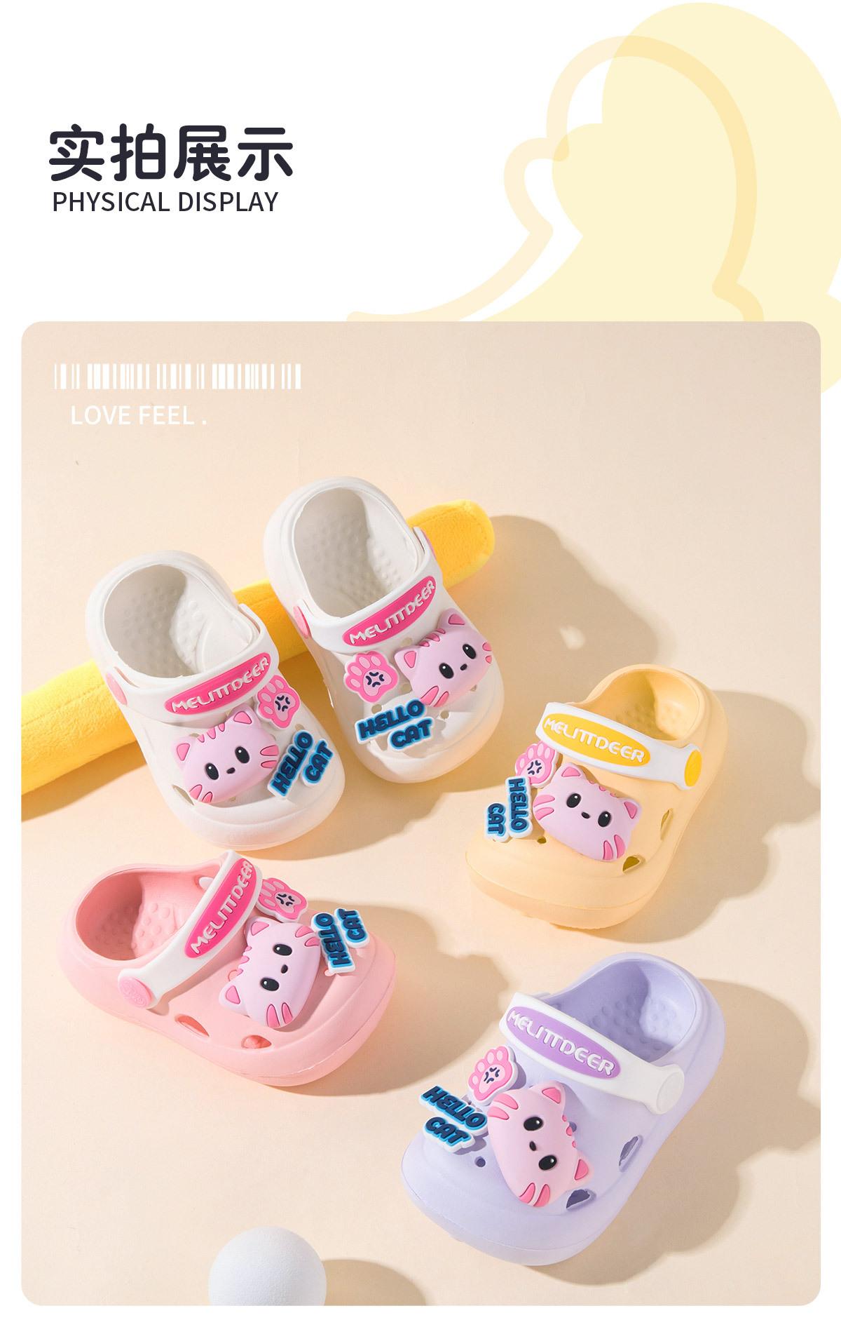 Zapatos multiusos para niños, venta al por mayor, con agujeros, sandalias para niñas con bonitos dibujos de gatos, transpirables y resistentes al desgaste, para verano
